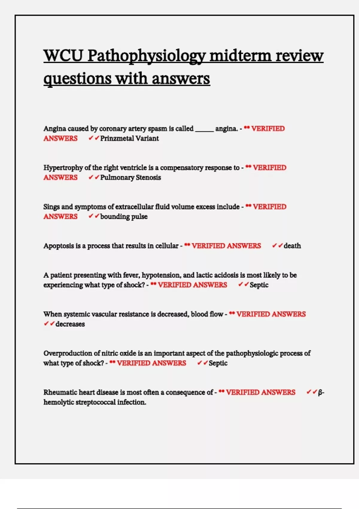 ANSWERS🔰 ✔✔Pulmonary Stenosis