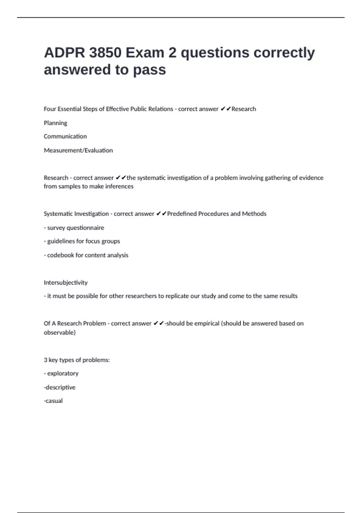 ADPR 3850 Exam 2 questions correctly answered to pass