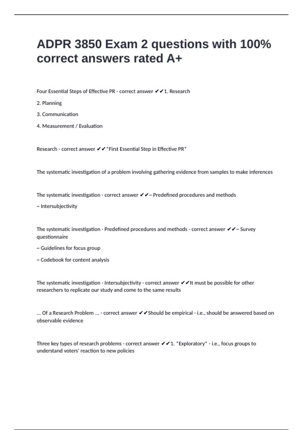 ADPR 3850 Exam 2 questions with 100% correct answers rated A+