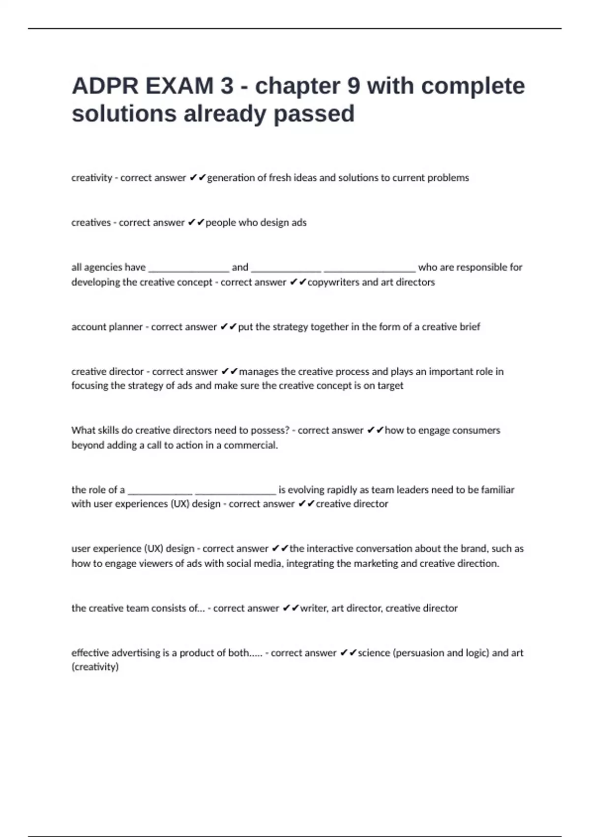 ADPR EXAM 3 - chapter 9 with complete solutions already passed