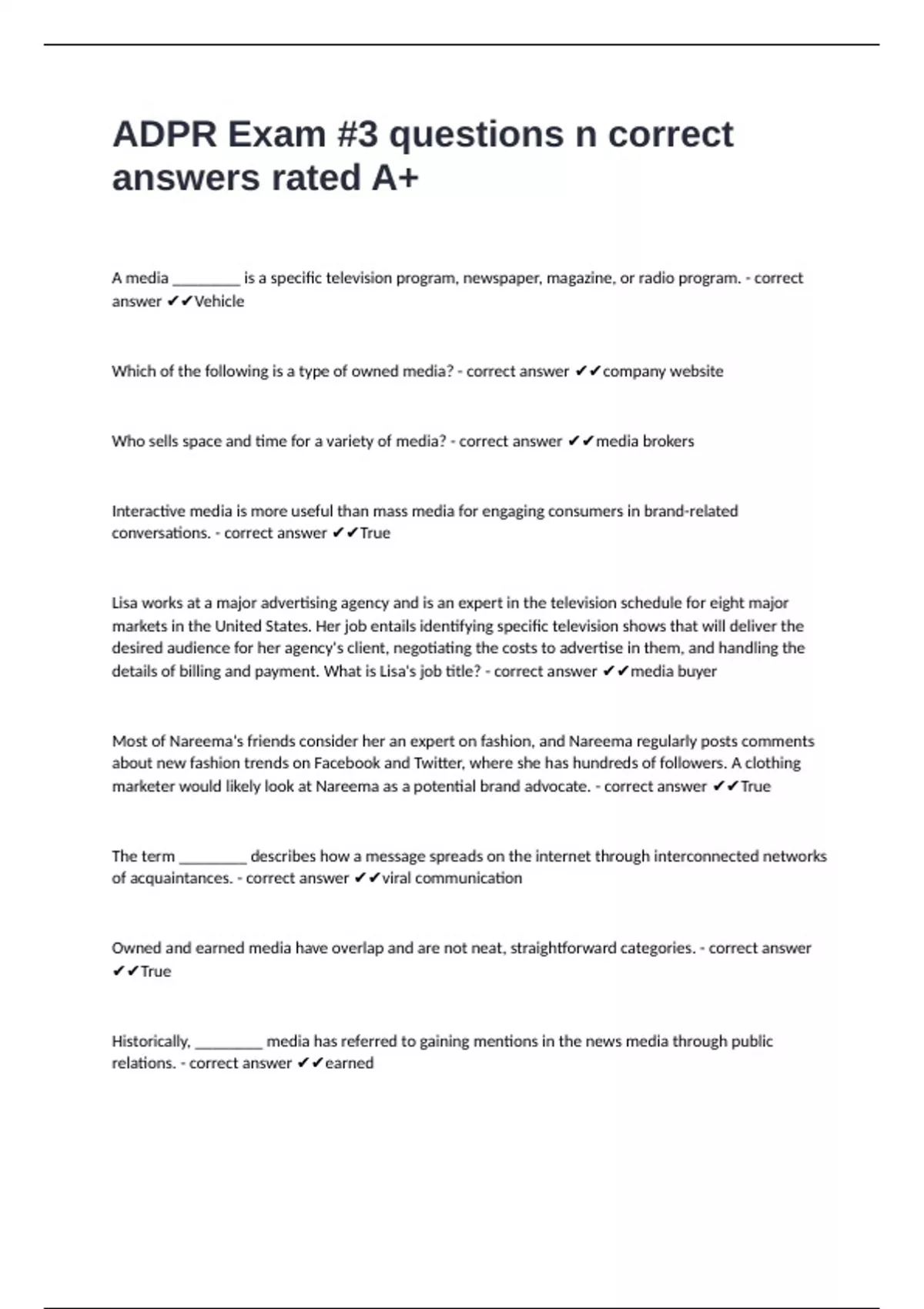 Who sells space and time for a variety of media? - correct answer ✔✔media brokers