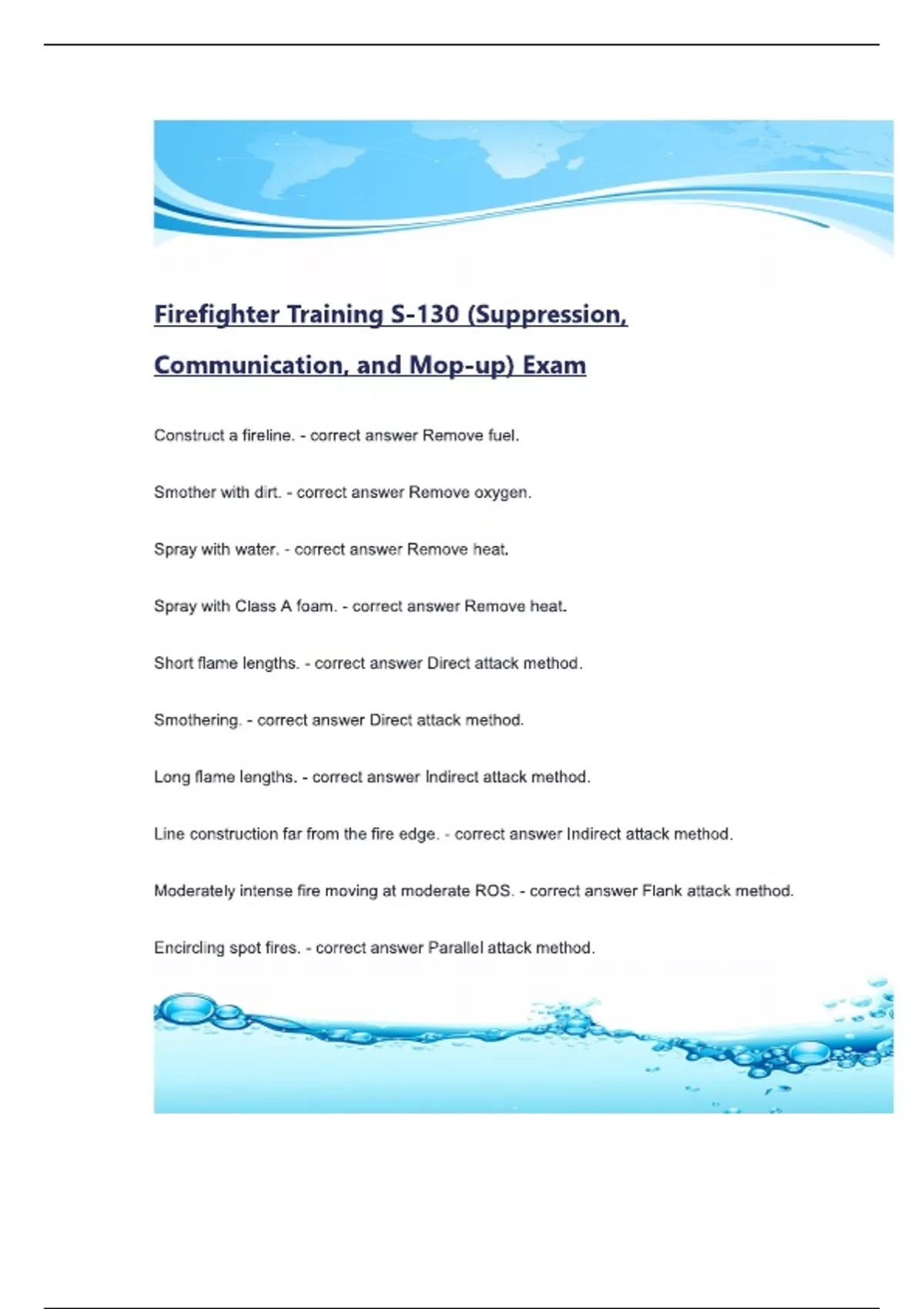 Firefighter Training S-130 (Suppression, Communication, and Mop-up) Exam