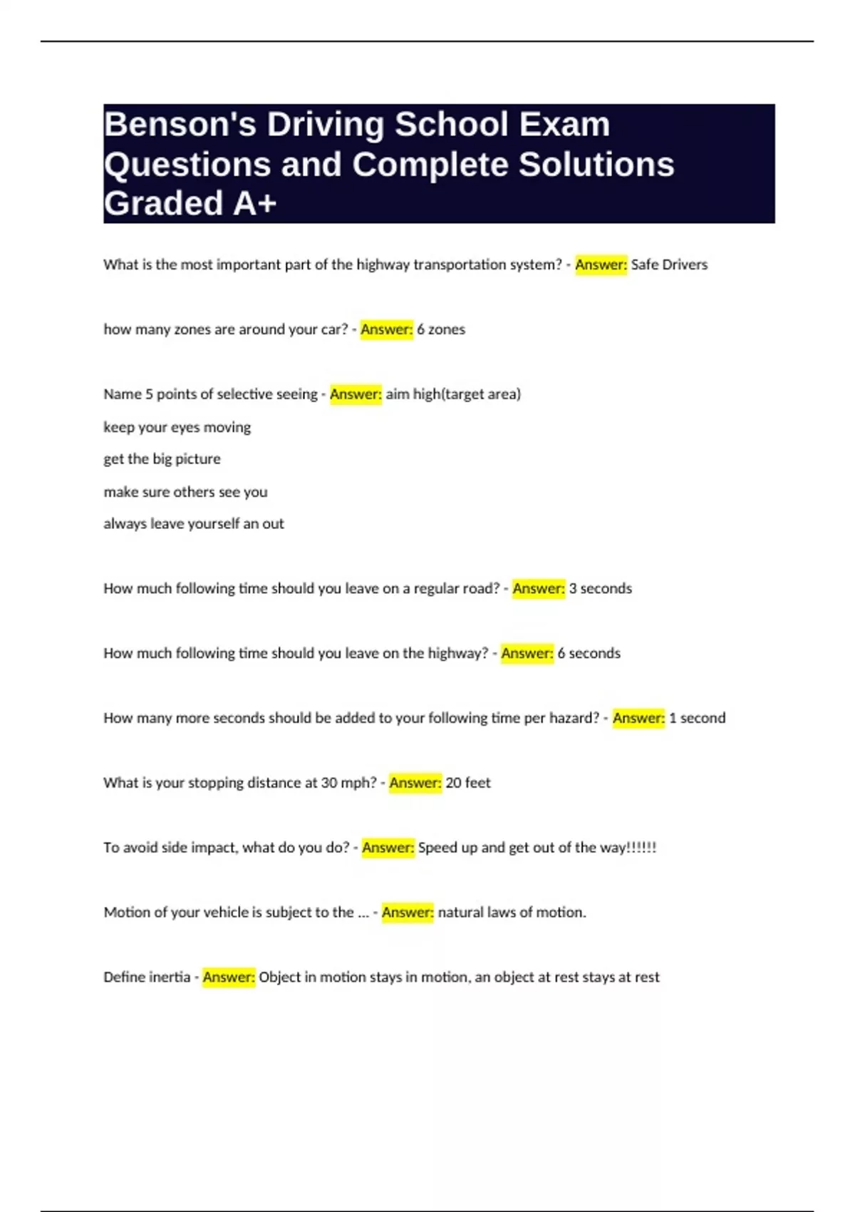 What is your stopping distance at 30 mph? - Answer: 20 feet