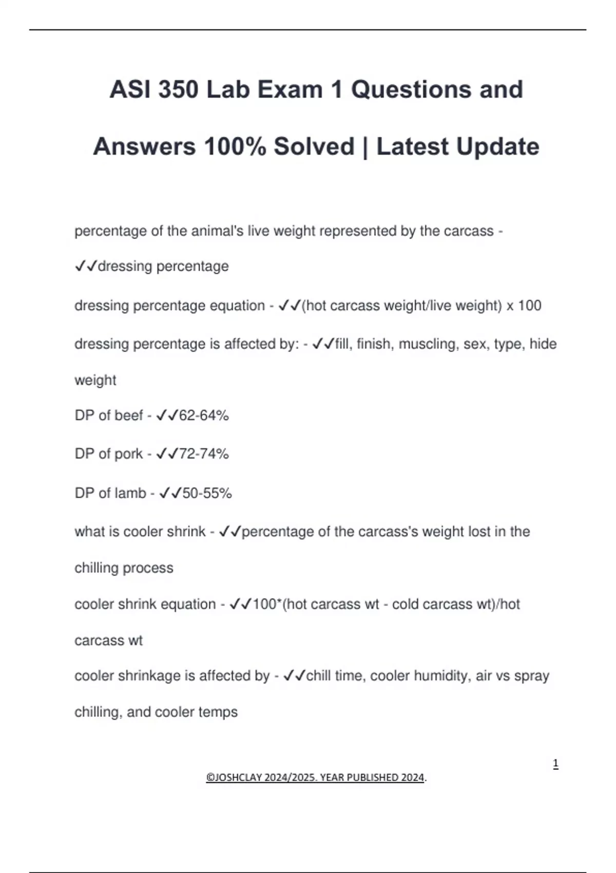 dressing percentage equation - ✔✔(hot carcass weight/live weight) x 100