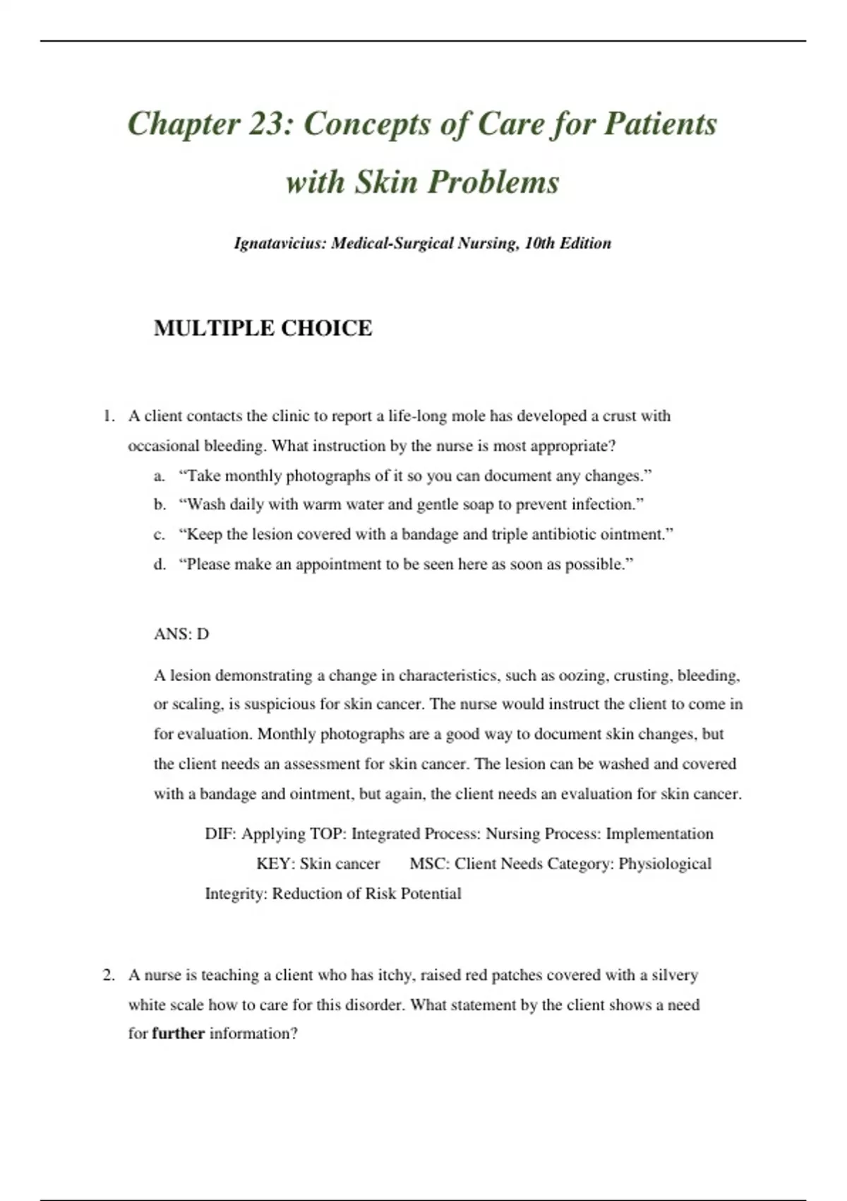 KEY: Skin cancer MSC: Client Needs Category: Physiological