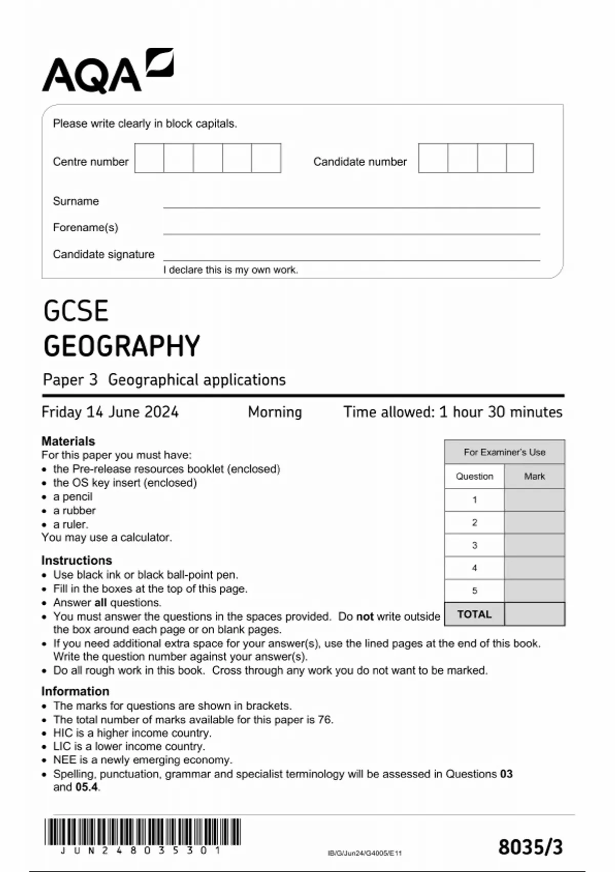 2024 AQA GCSE GEOGRAPHY PAPER 3 QP(8035/3)