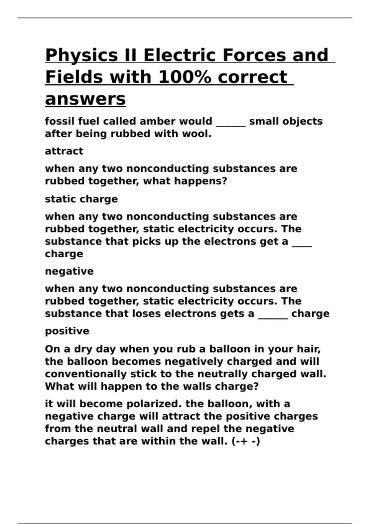 Physics II Electric Forces and