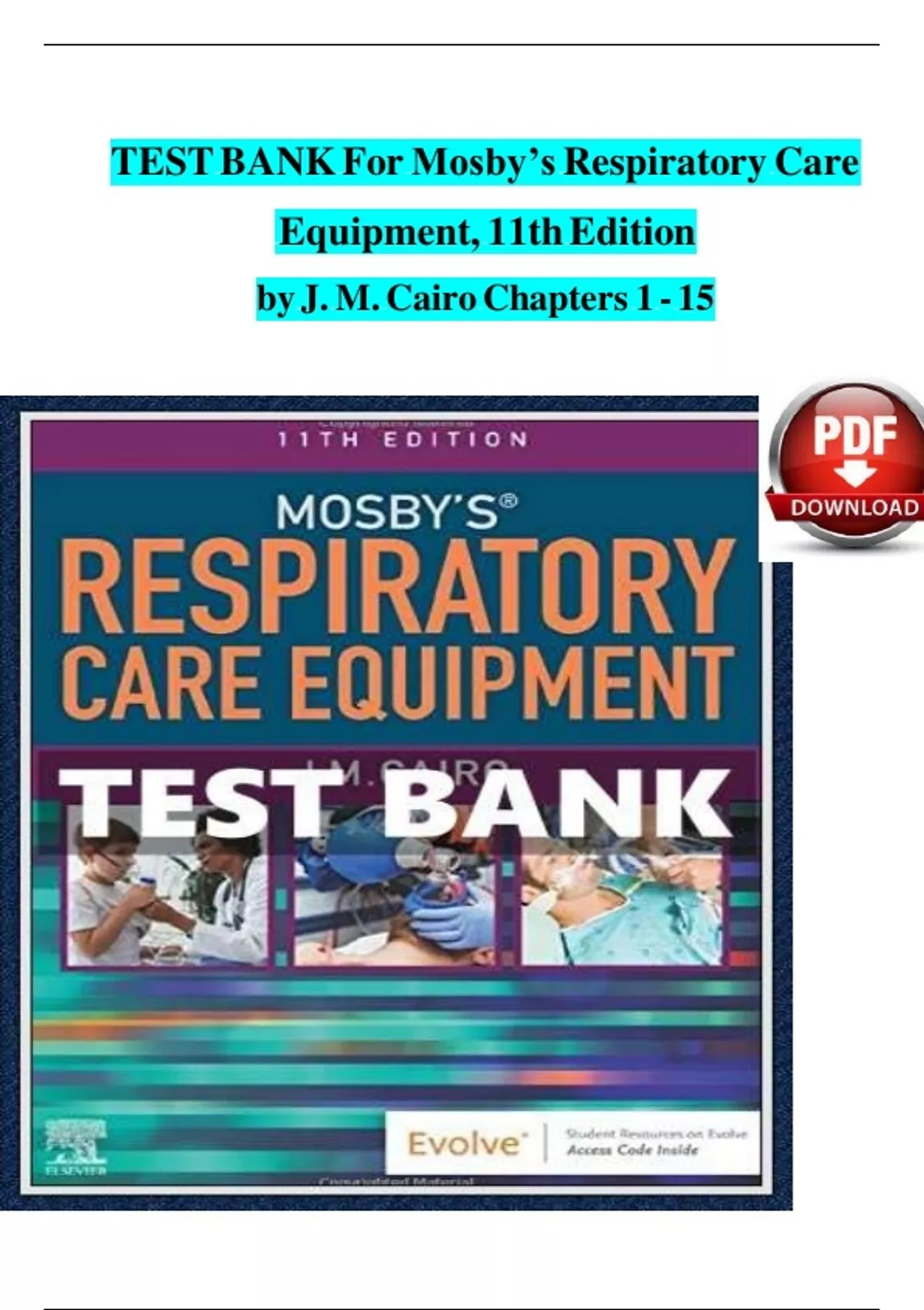 TEST BANK For Mosby’s Respiratory Care Equipment, 11th Edition by J. M. Cairo Chapters 1 - 15