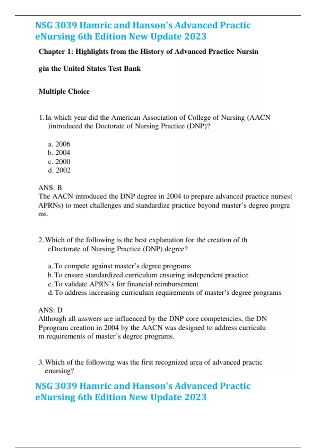 NSG 3039 Hamric and Hanson's Advanced Practic