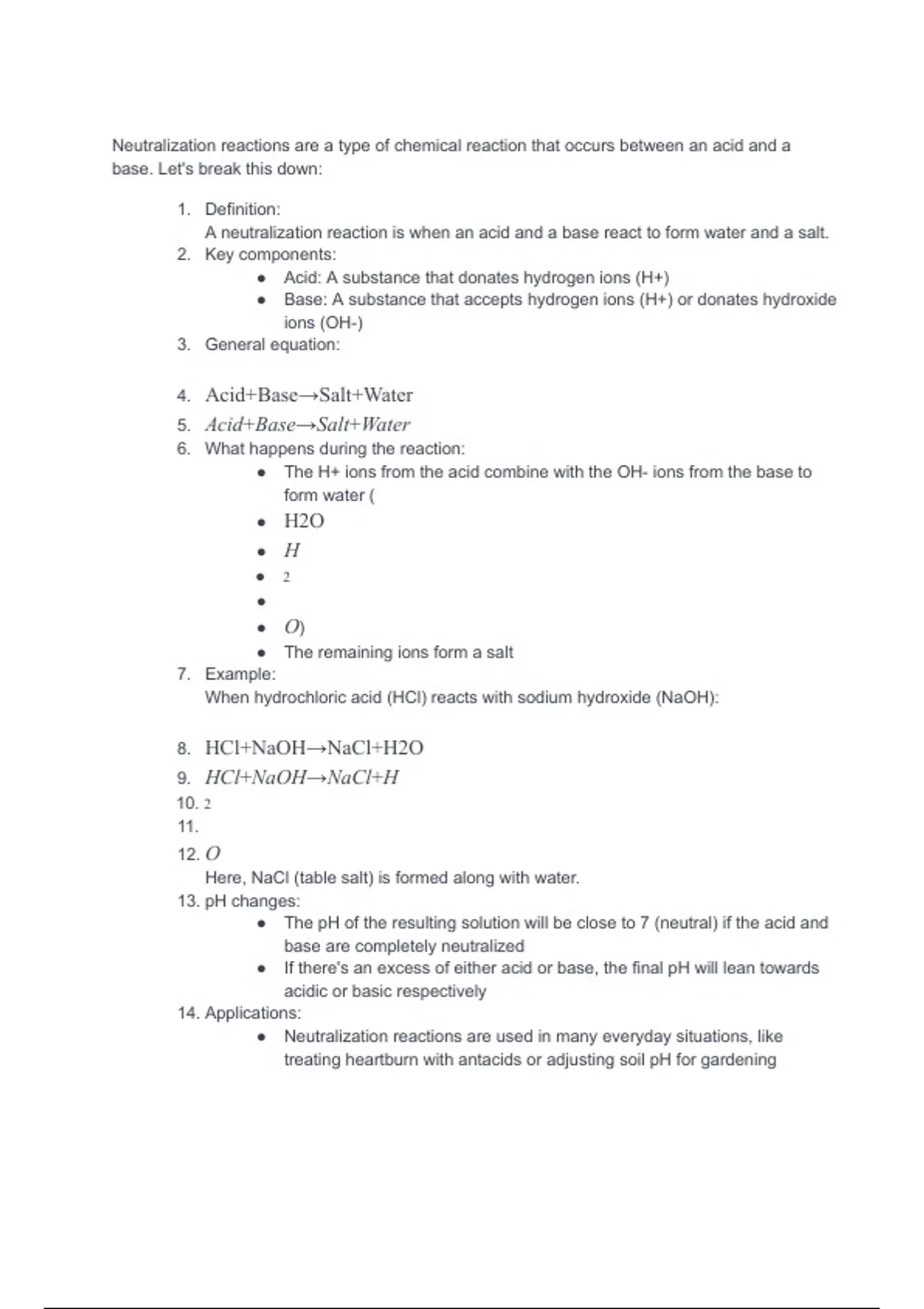 A neutralization reaction is when an acid and a base react to form water and a salt.