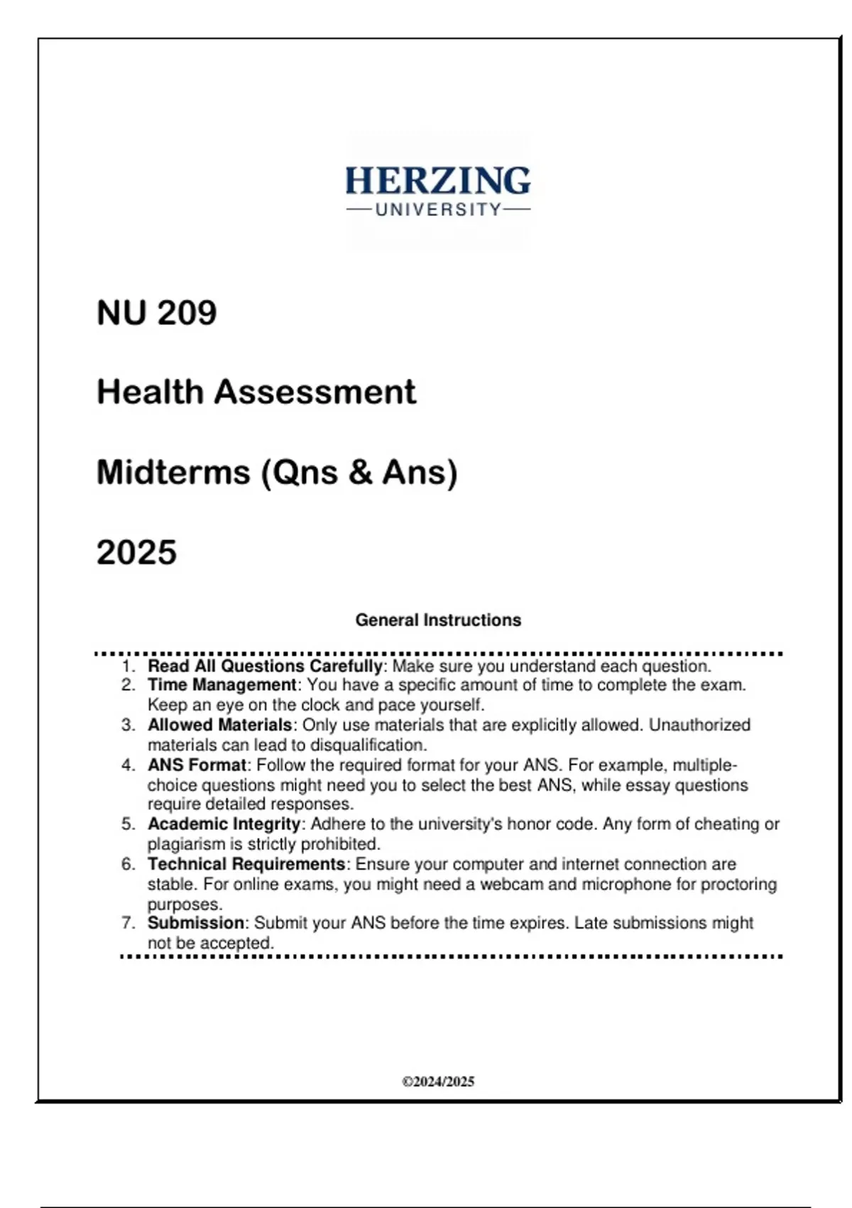 7. Submission: Submit your ANS before the time expires. Late submissions might