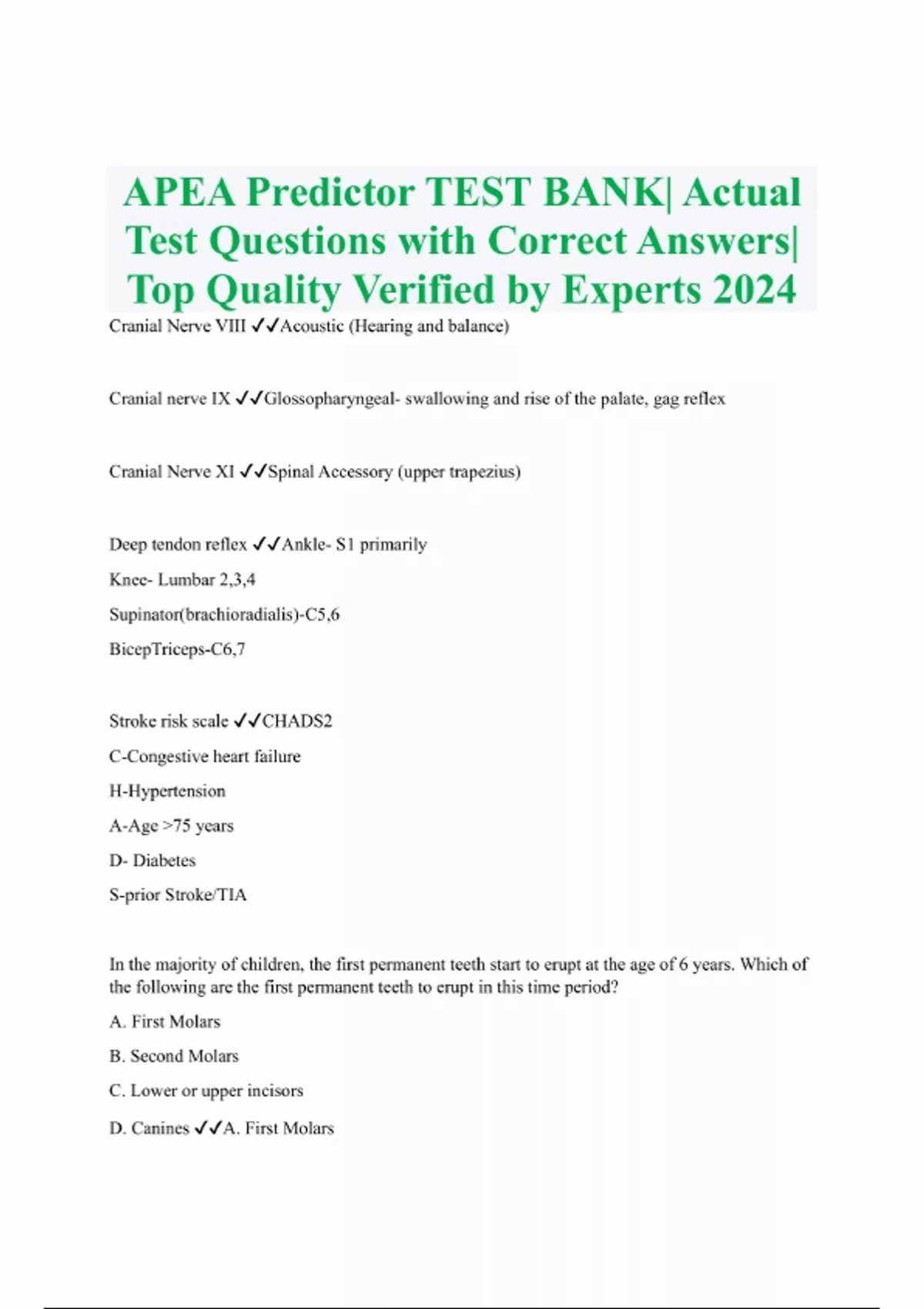 APEA Predictor TEST BANK]| Actual Test Questions with Correct Answers| Top Quality Verified by Experts 2024