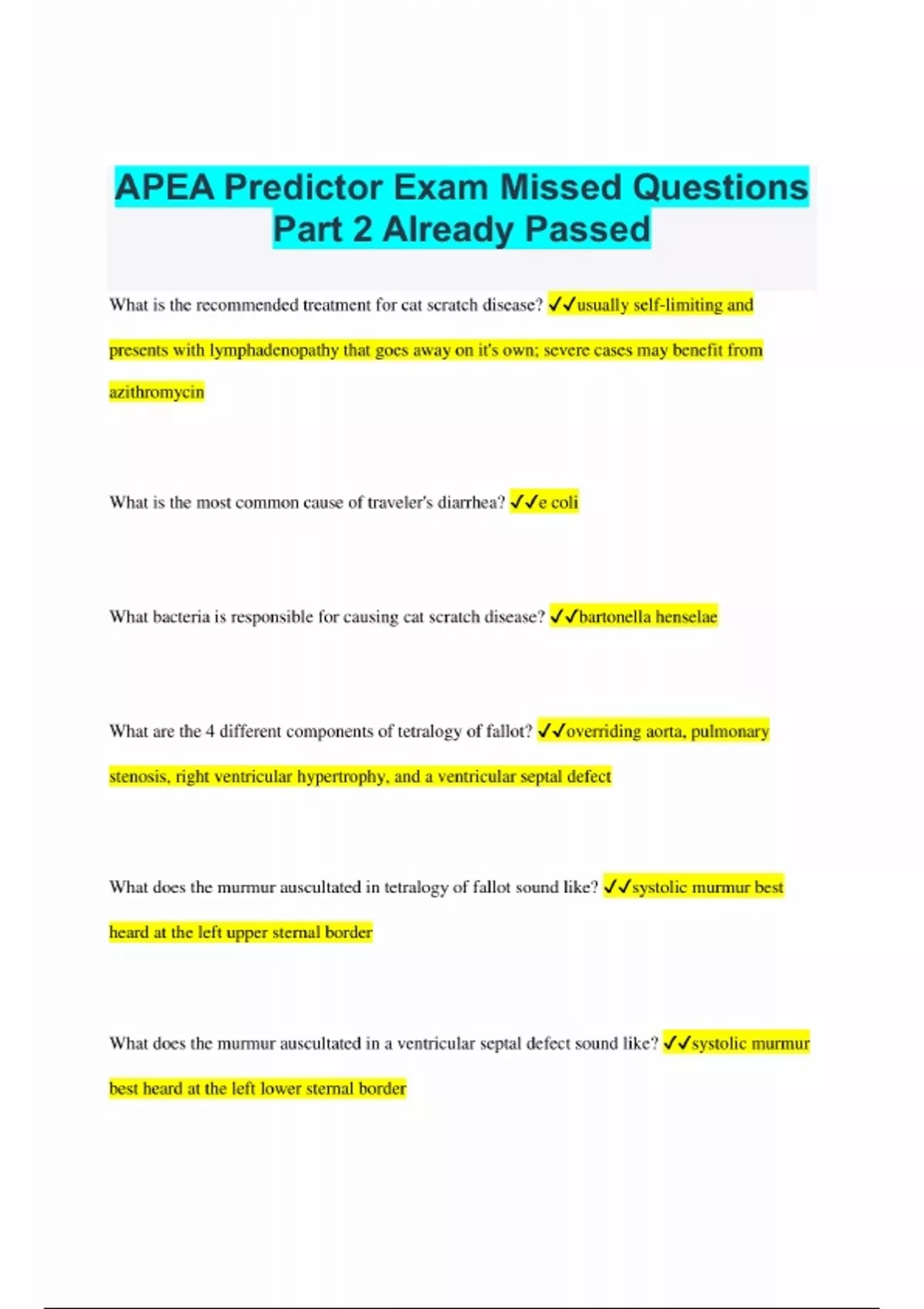 APEA Predictor 2025 Exam Missed Questions Part 2 Already Passed