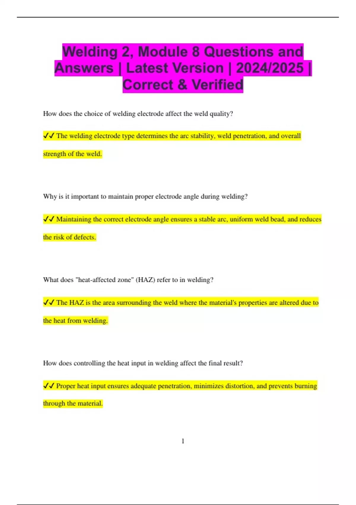 ✔✔ Proper heat input ensures adequate penetration, minimizes distortion, and prevents burning