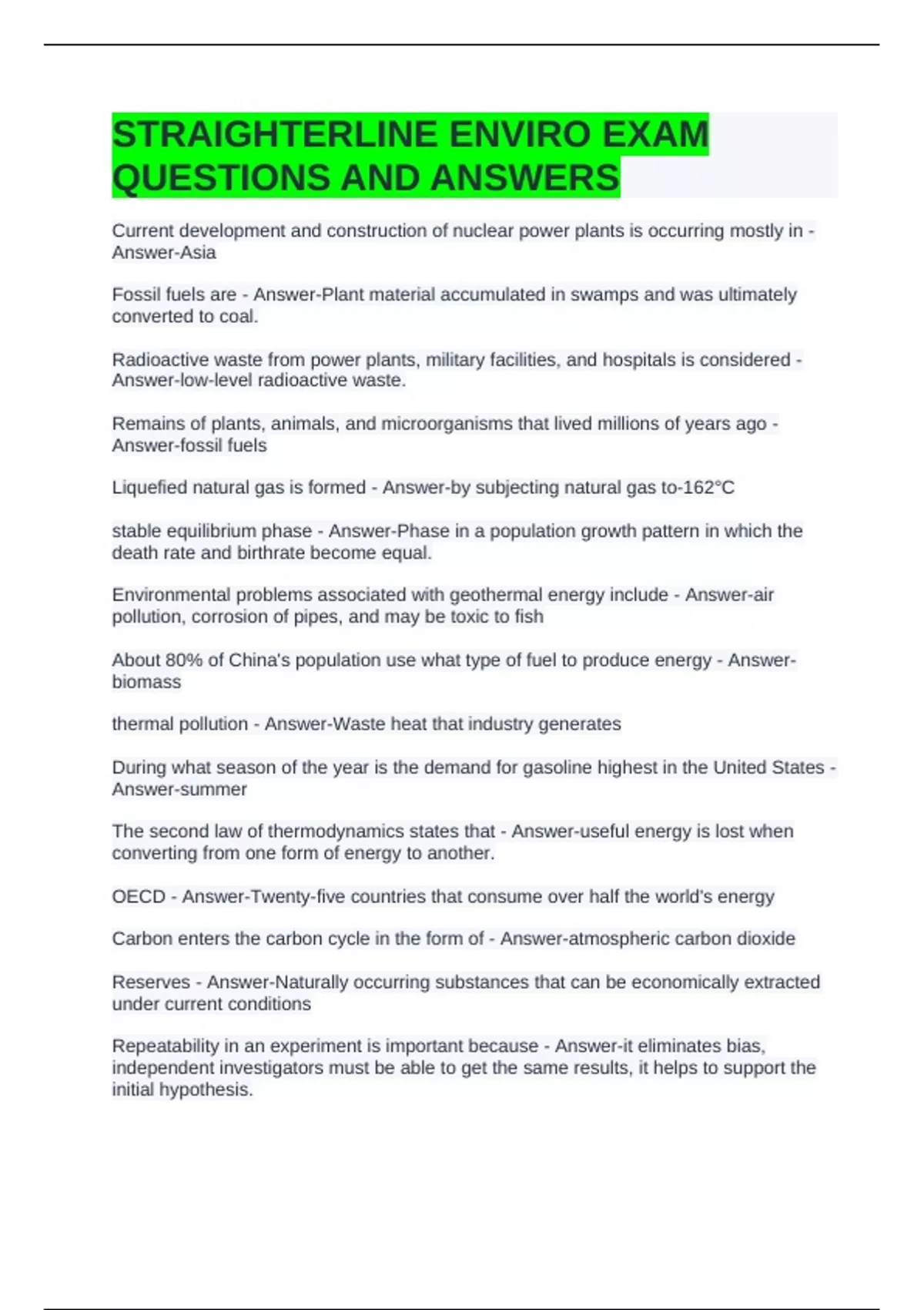 STRAIGHTERLINE ENVIRO EXAM