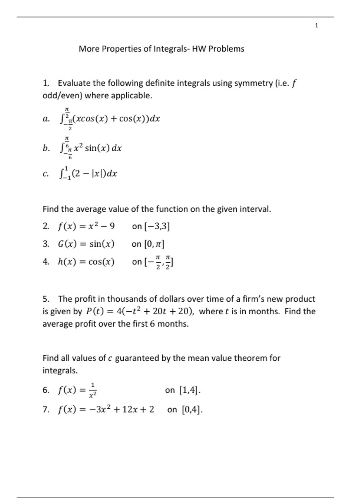 1. Evaluate the following definite integrals using symmetry (i.e. 𝑓