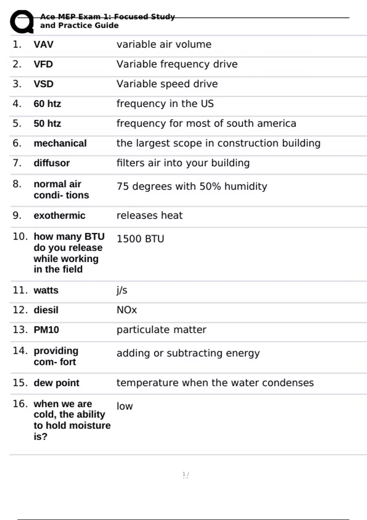 , Ace MEP Exam 1: Focused Study