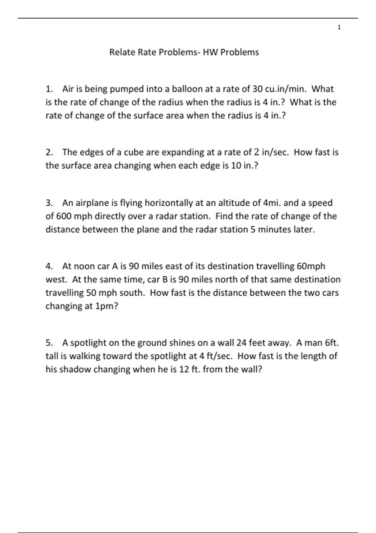 Relate Rate Problems- HW Problems