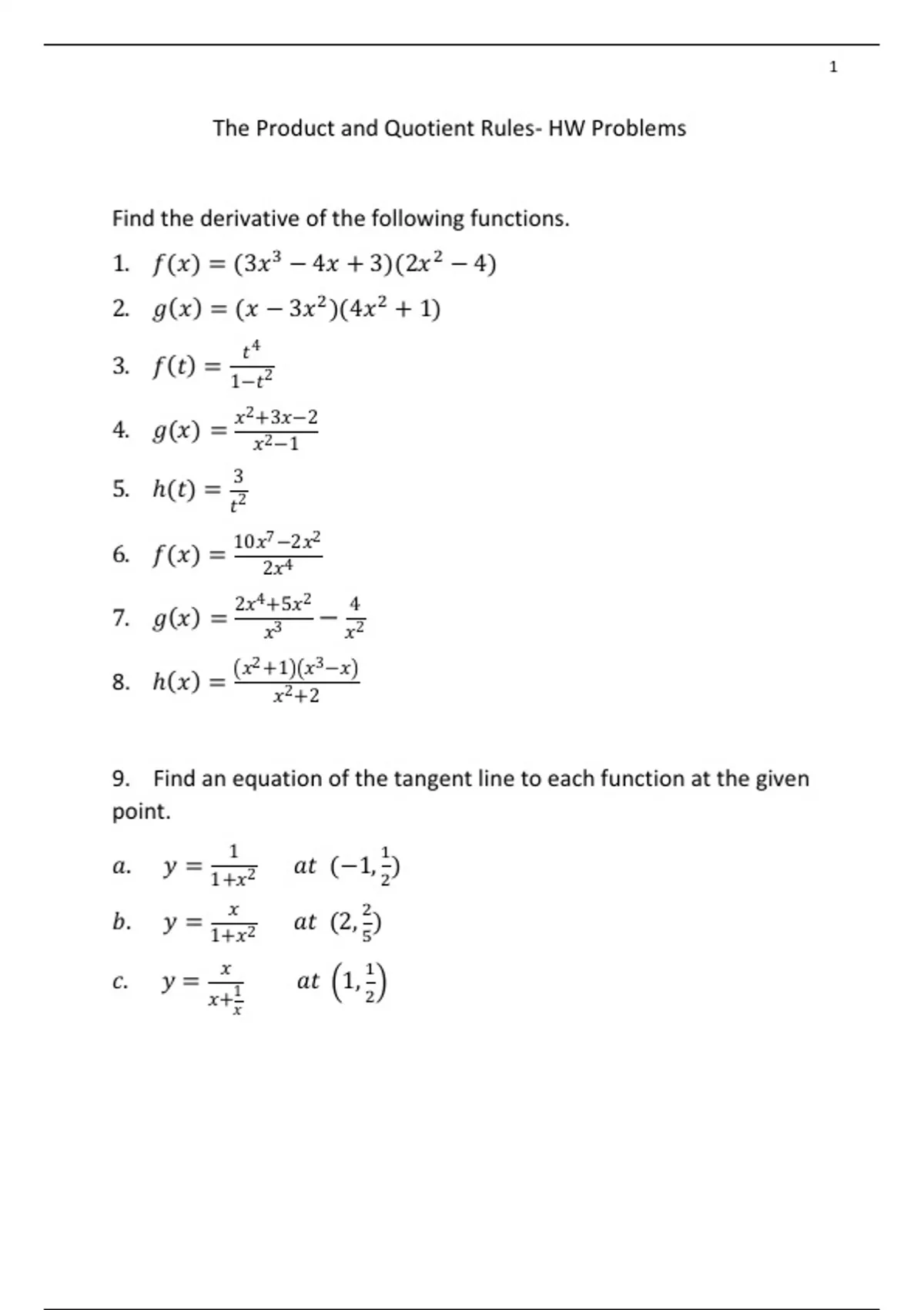 The Product and Quotient Rules- HW Problems