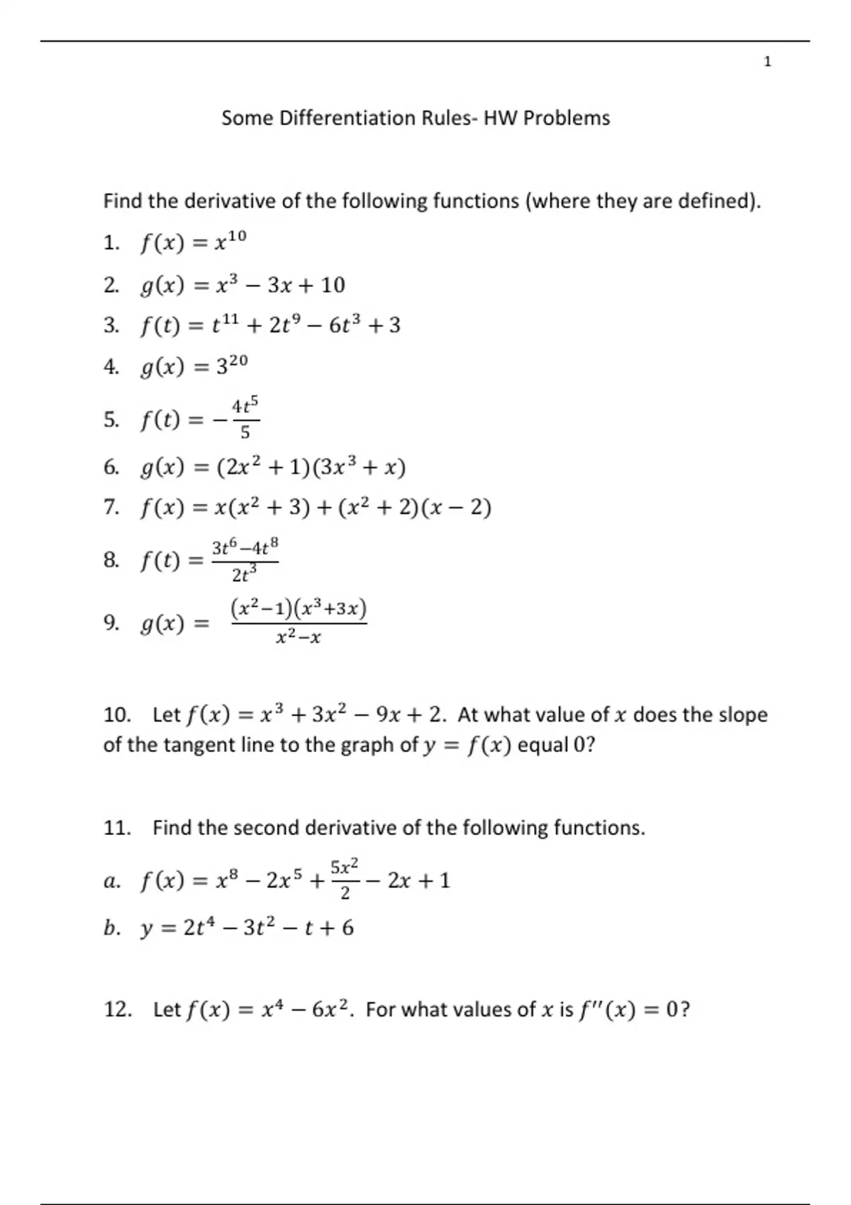Some Differentiation Rules- HW Problems