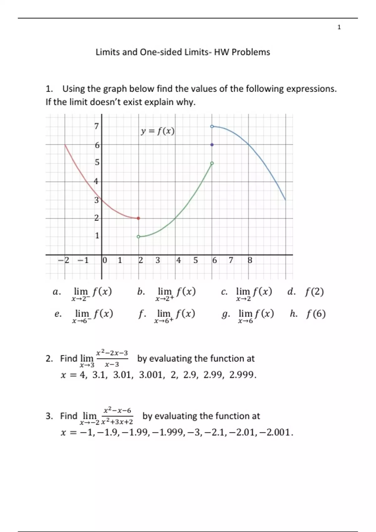 Limits and One-sided Limits- HW Problems