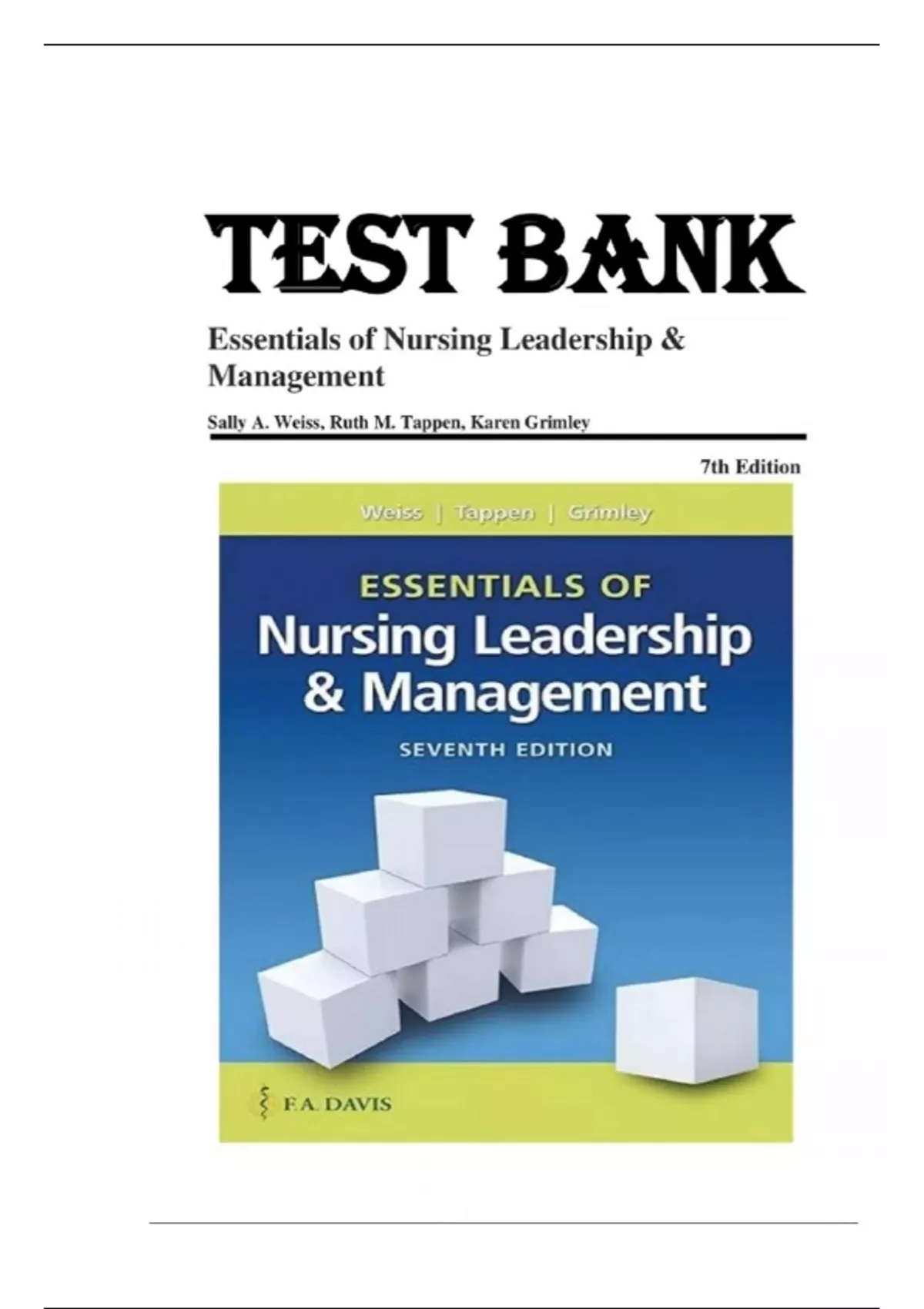 TEST BANK For Essentials of Nursing. Leadership & Management 8th Edition. Sally A. Weiss, Verified Chapters 1 - 16, Complete
