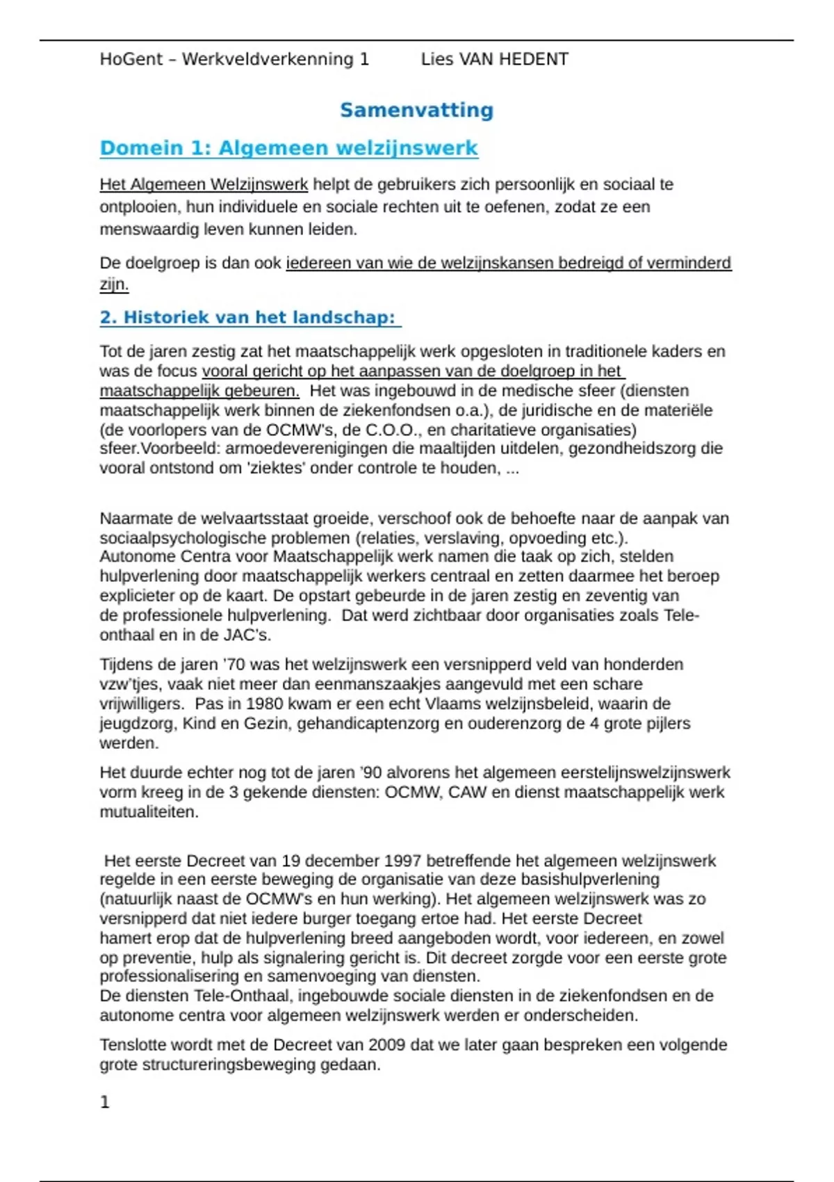 HoGent – Werkveldverkenning 1 Lies VAN HEDENT
