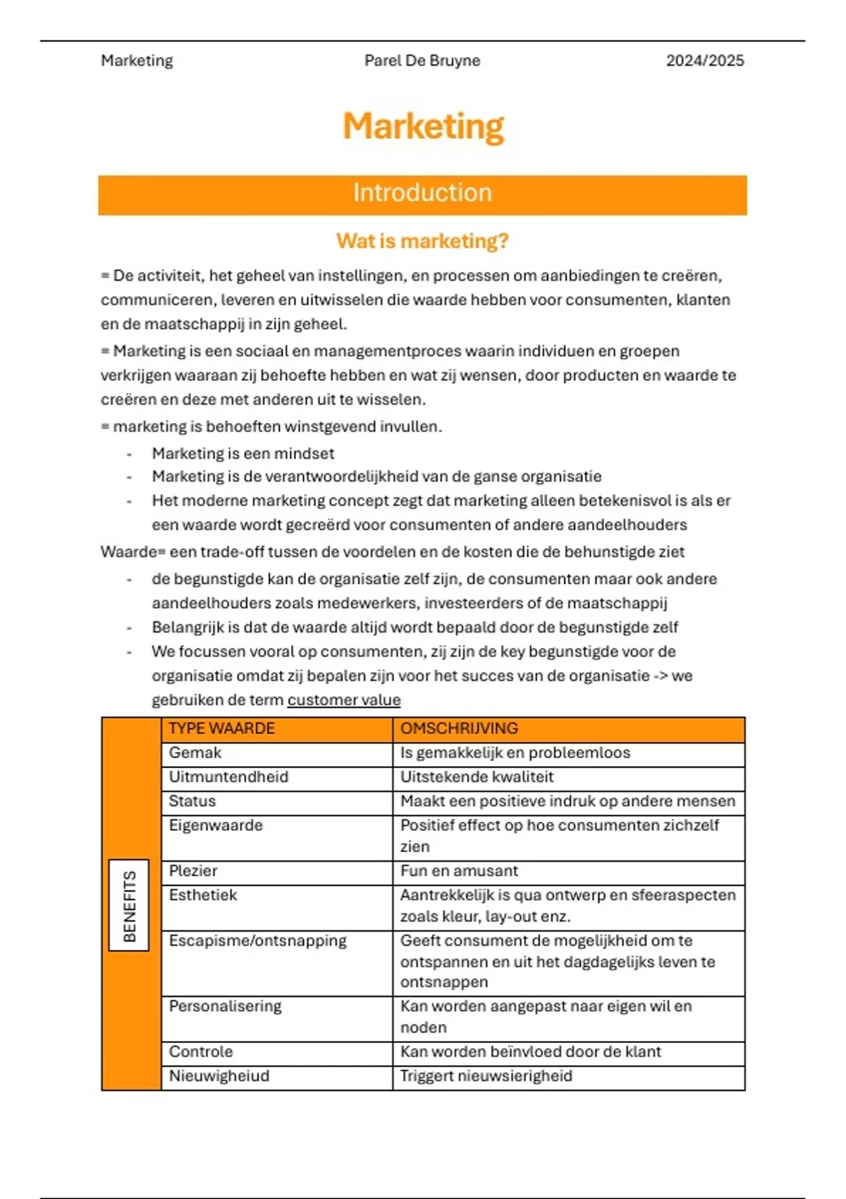 Waarde= een trade-oJ tussen de voordelen en de kosten die de behunstigde ziet