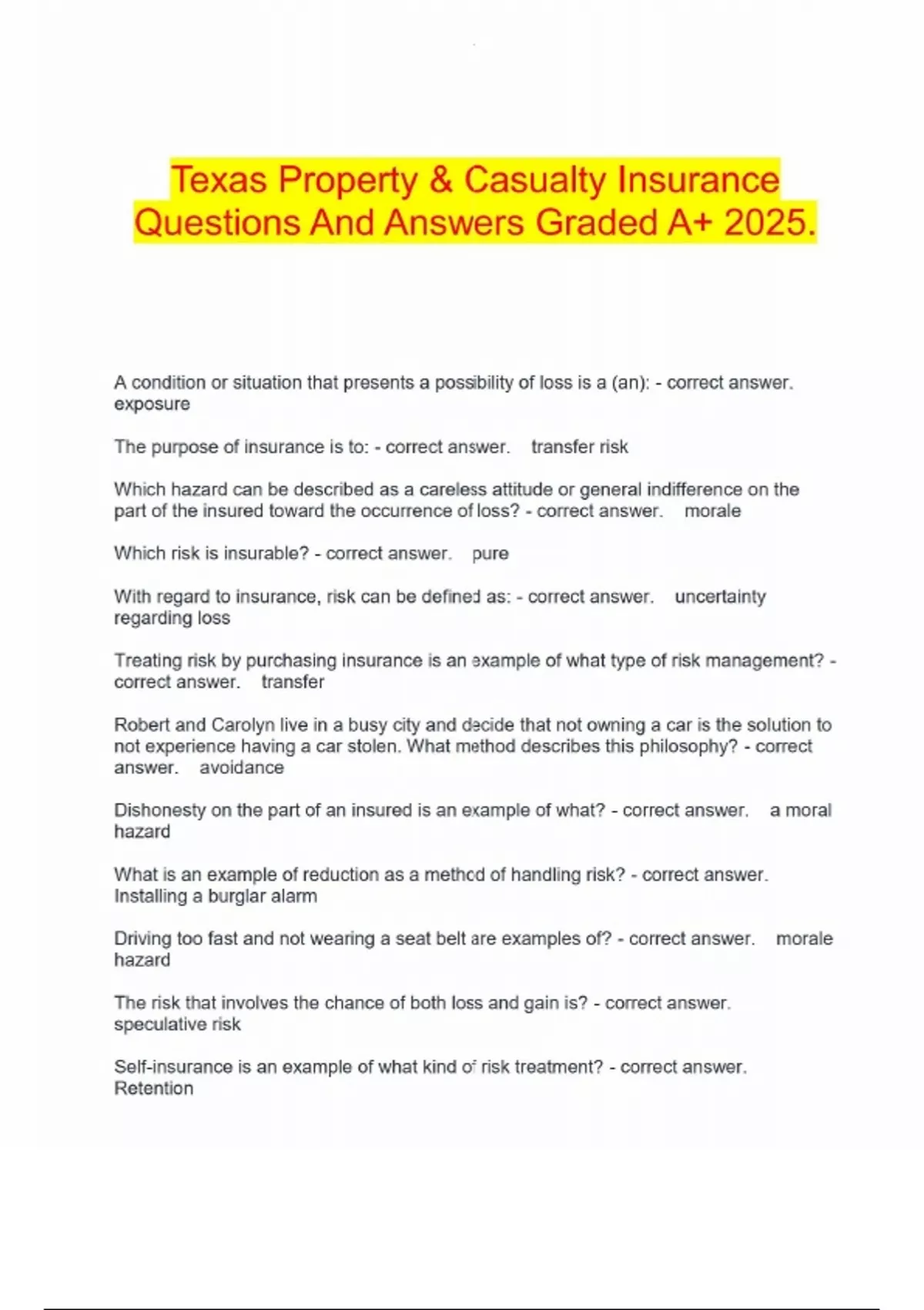 Texas Property & Casualty Insurance Questions And Answers Graded A+ 2025.Texas Property & Casualty Insurance Questions And Answers Graded A+ 2025.Texas Property & Casualty Insurance Questions And Answers Graded A+ 2025.Texas Property & Casualty Insurance Questions And Answers Graded A+ 2025.Texas Property & Casualty Insurance Questions And Answers Graded A+ 2025.