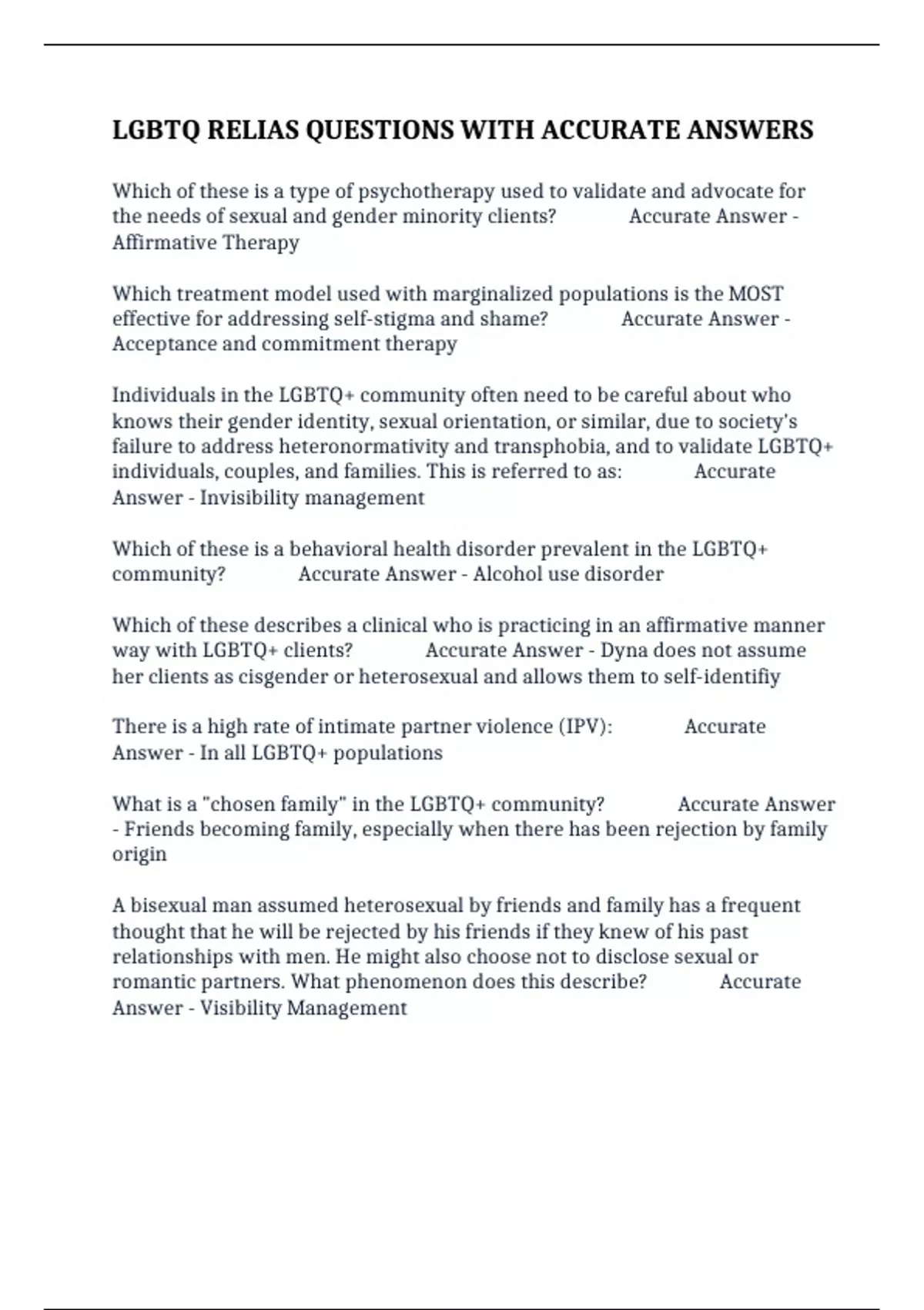 the needs of sexual and gender minority clients? Accurate Answer -