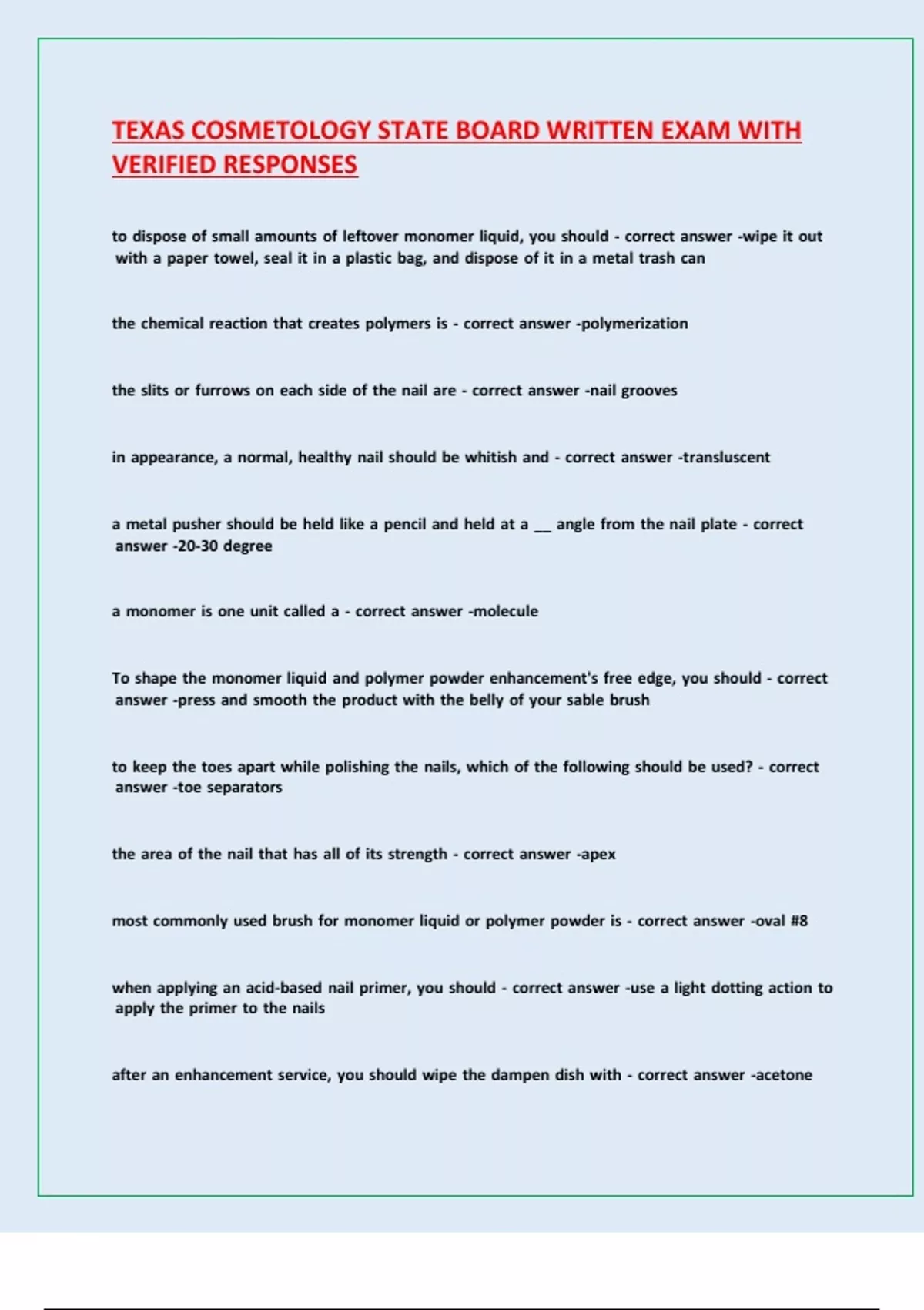 TEXAS COSMETOLOGY STATE BOARD WRITTEN EXAM WITH