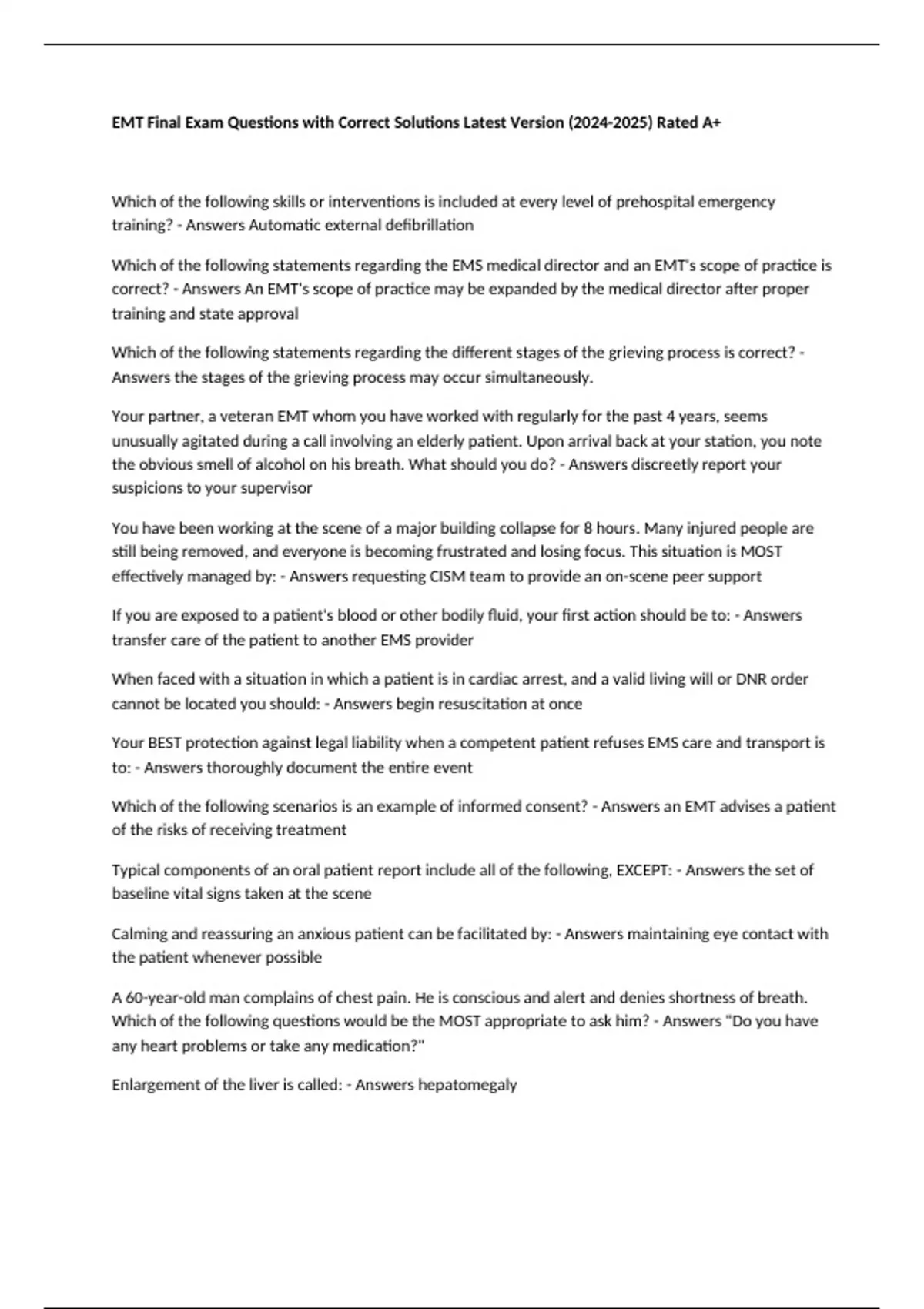 Which of the following scenarios is an example of informed consent? - Answers an EMT advises a patient