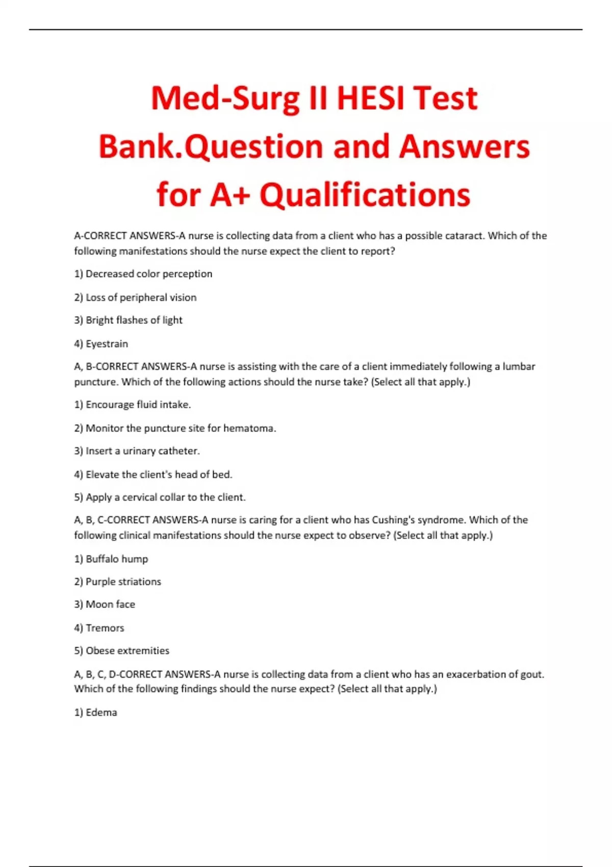 A, B, C, D-CORRECT ANSWERS-A nurse is collecting data from a client who has an exacerbation of gout.