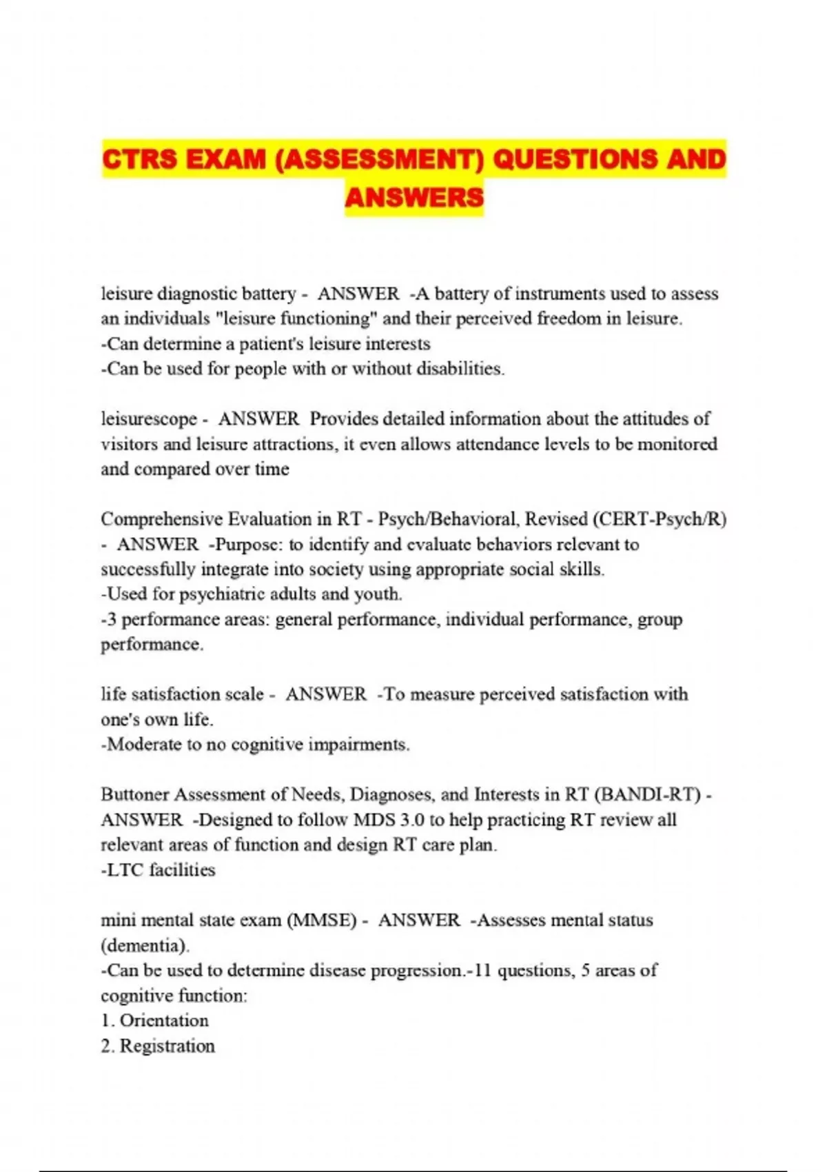 CTRS EXAM (ASSESSMENT) QUESTIONS AND ANSWERS