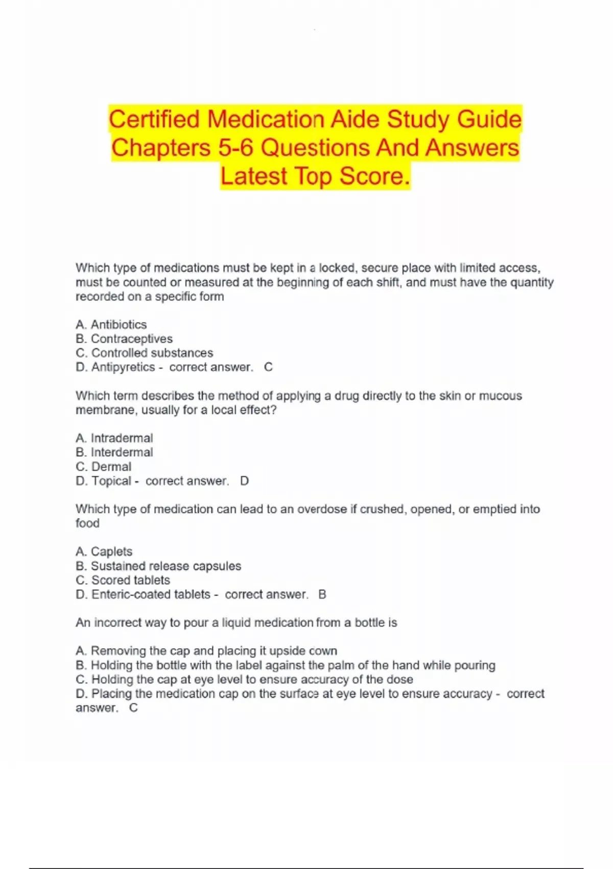 Certified Medication Aide Study Guide Chapters 5-6 Questions And Answers Latest Top Score.Certified Medication Aide Study Guide Chapters 5-6 Questions And Answers Latest Top Score.Certified Medication Aide Study Guide Chapters 5-6 Questions And Answers Latest Top Score.Certified Medication Aide Study Guide Chapters 5-6 Questions And Answers Latest Top Score.Certified Medication Aide Study Guide Chapters 5-6 Questions And Answers Latest Top Score.Certified Medication Aide Study Guide Chapters 5-6 Questions And Answers Latest Top Score.