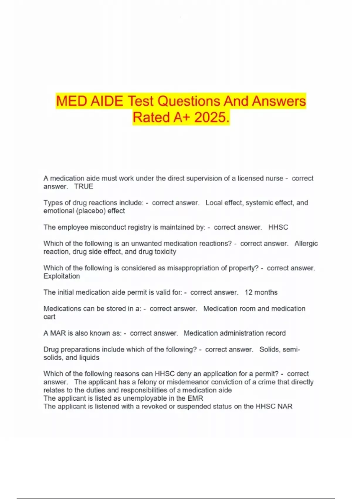 MED AIDE Test Questions And Answers Rated A+ 2025.MED AIDE Test Questions And Answers Rated A+ 2025.MED AIDE Test Questions And Answers Rated A+ 2025.MED AIDE Test Questions And Answers Rated A+ 2025.MED AIDE Test Questions And Answers Rated A+ 2025.MED AIDE Test Questions And Answers Rated A+ 2025.