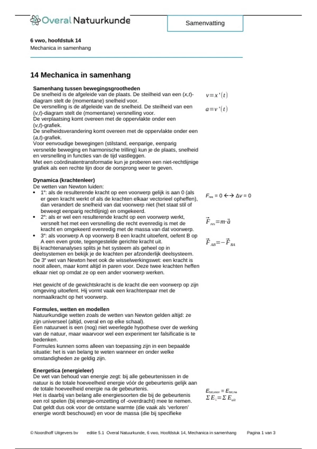 © Noordhoff Uitgevers bv editie 5.1 Overal Natuurkunde, 6 vwo, Hoofdstuk 14, Mechanica in samenhang Pagina 1 van 3