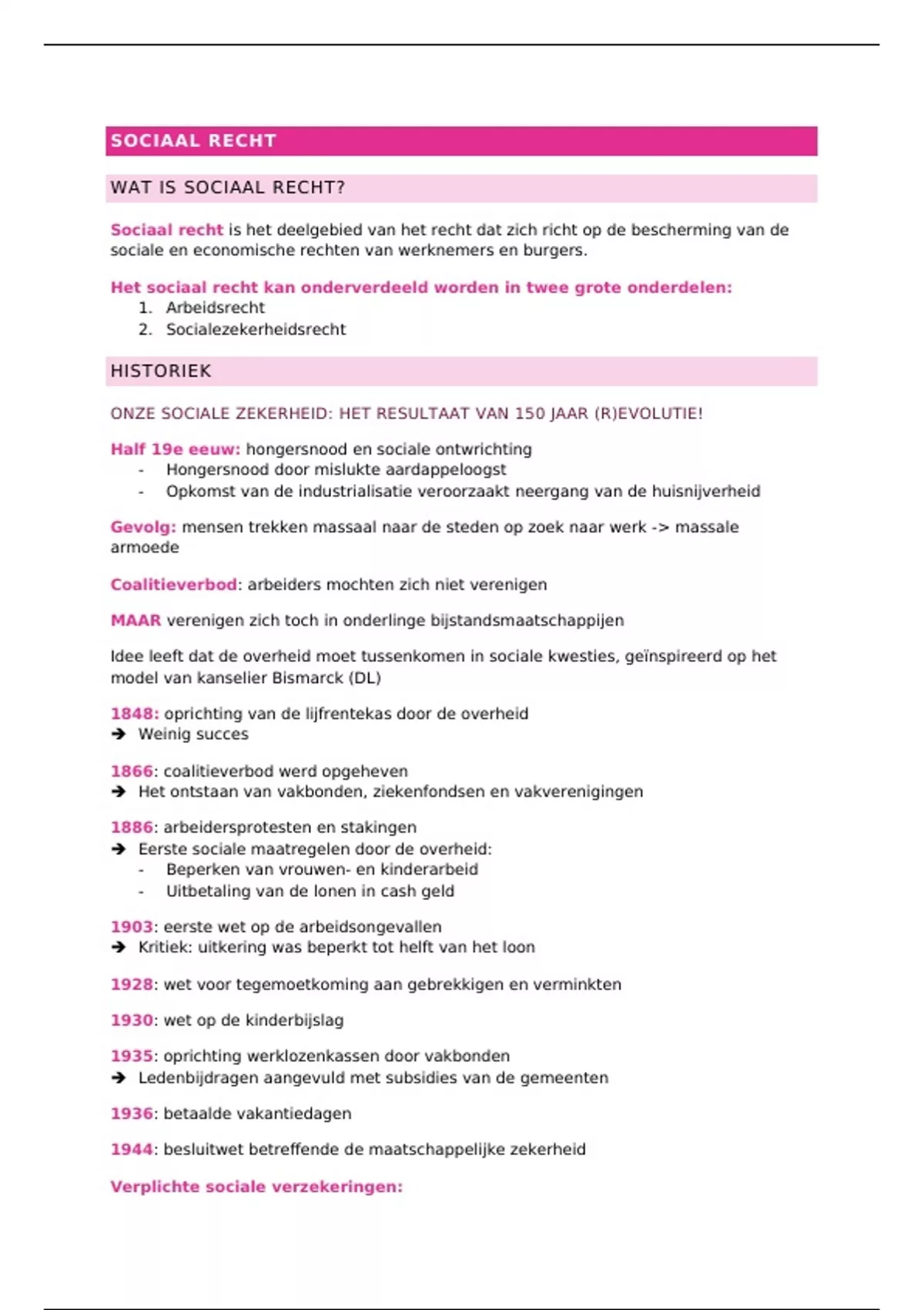 Het sociaal recht kan onderverdeeld worden in twee grote onderdelen: