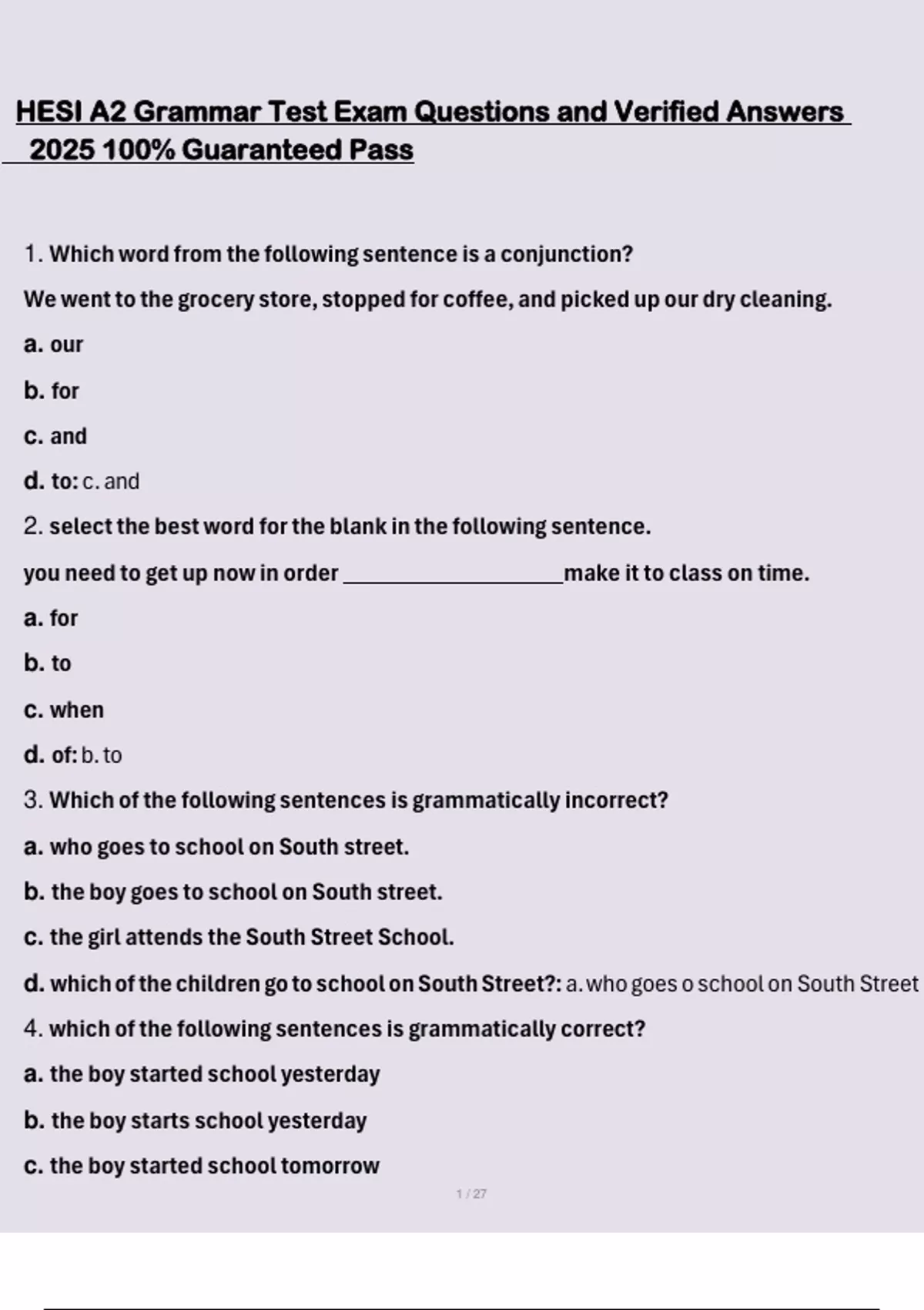 ,d. the boy did start school tomorrow: a. the boy started school yesterday