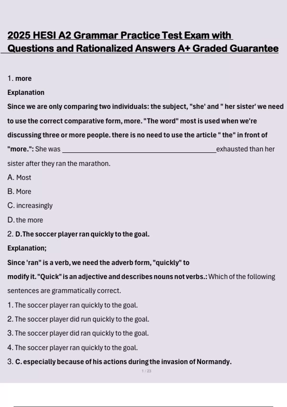 2. D. The soccer player ran quickly to the goal.