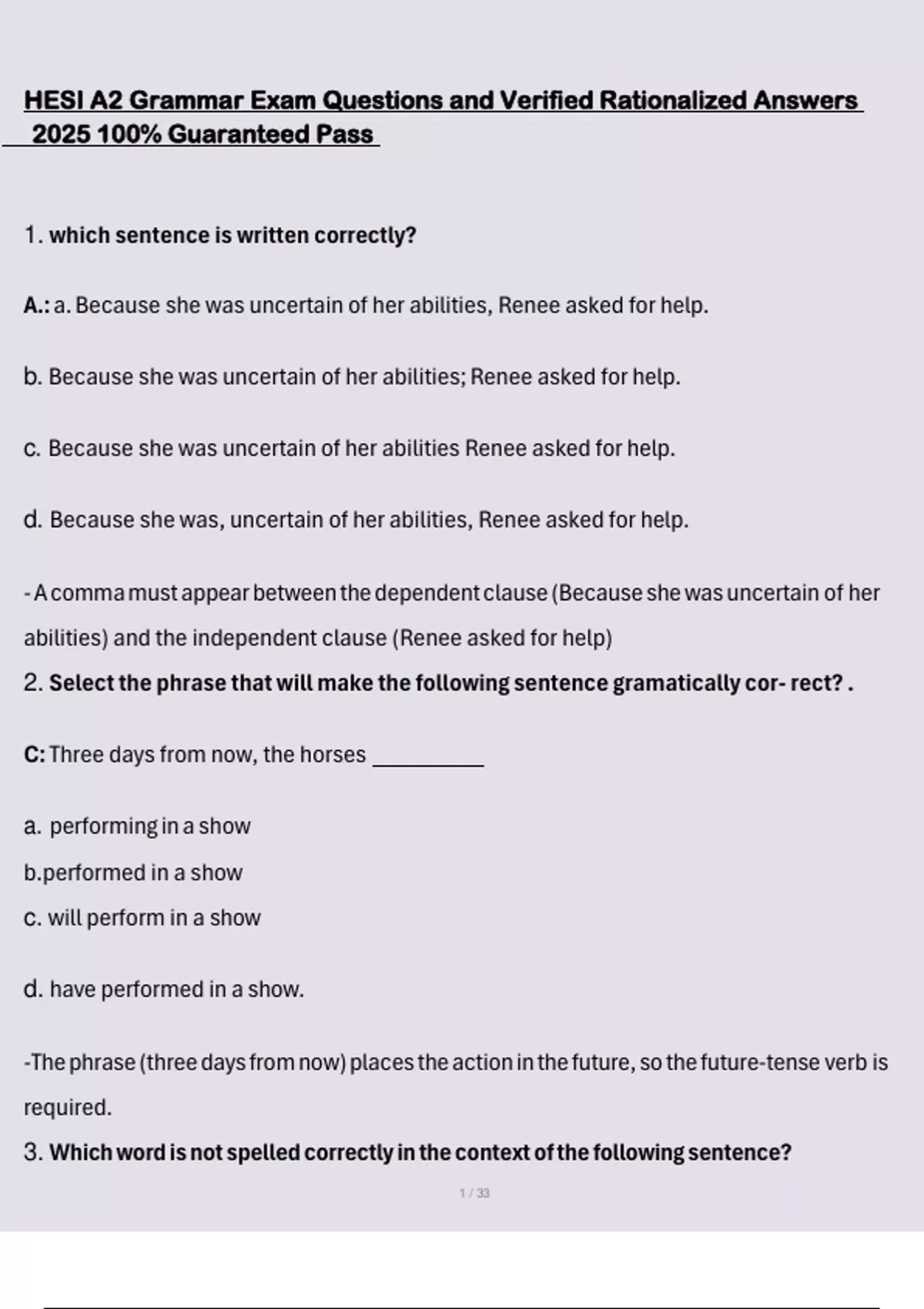 2. Select the phrase that will make the following sentence gramatically cor- rect? .