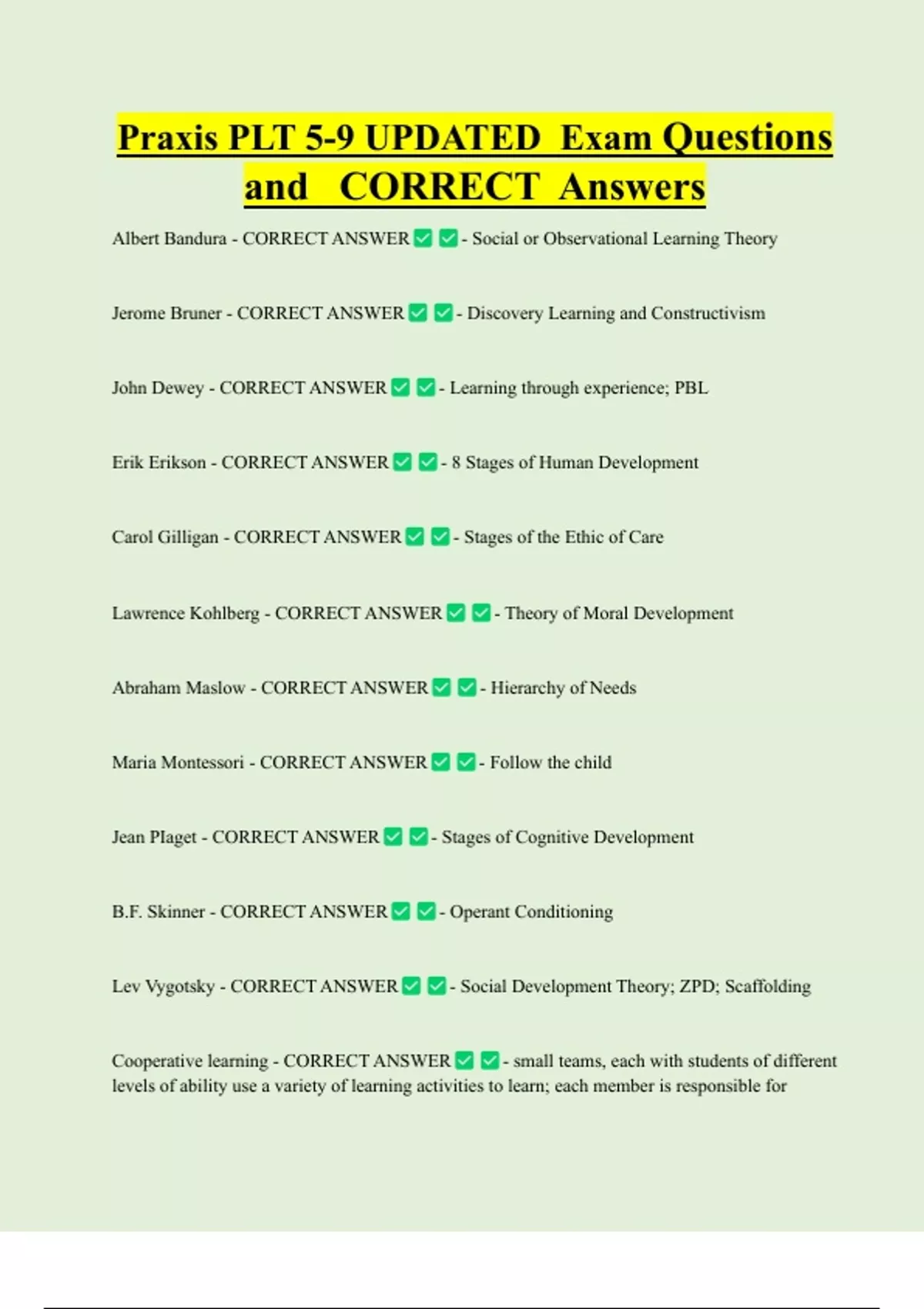 Erik Erikson - CORRECT ANSWER - 8 Stages of Human Development