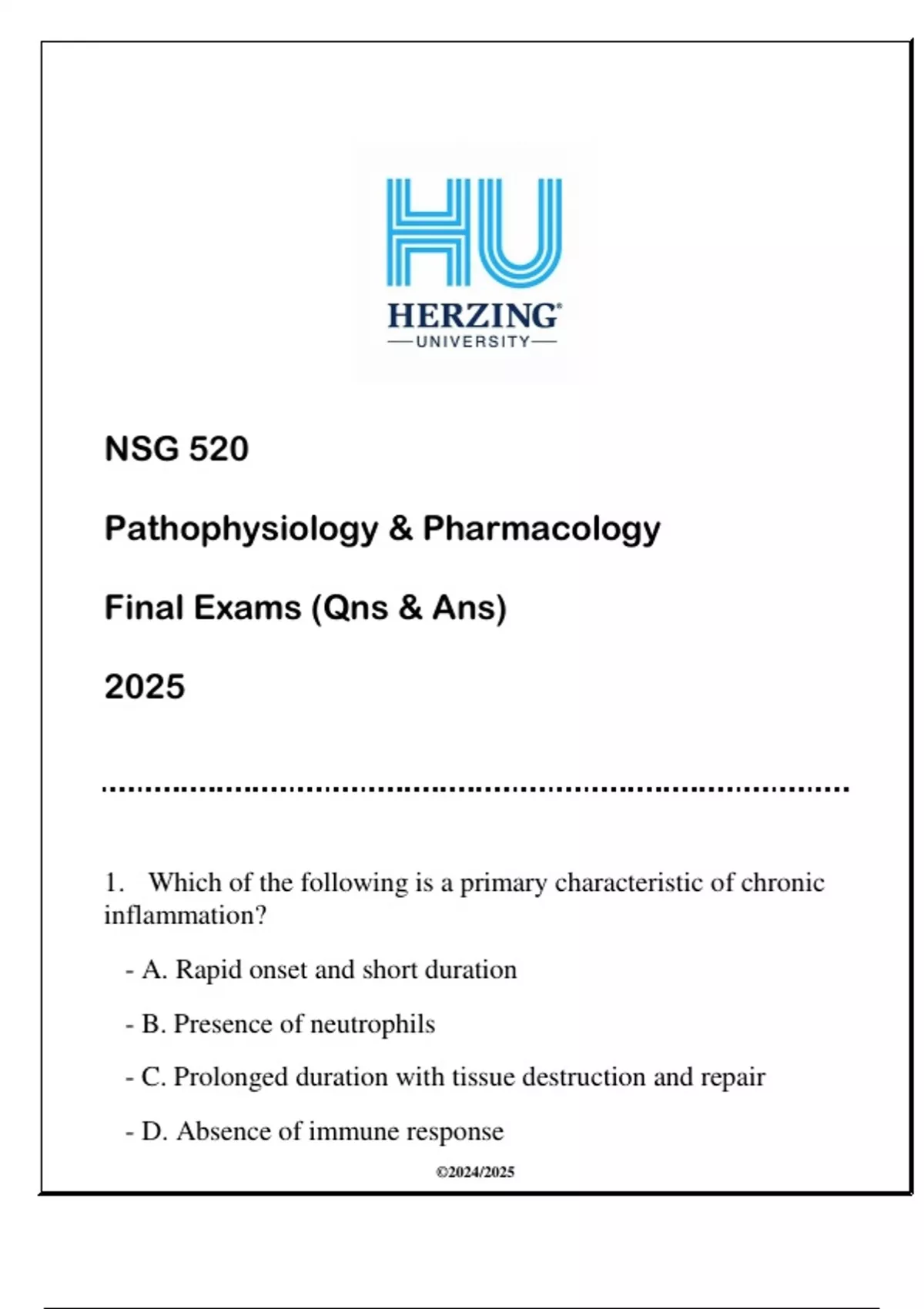 , - ANS: C. Prolonged duration with tissue destruction and