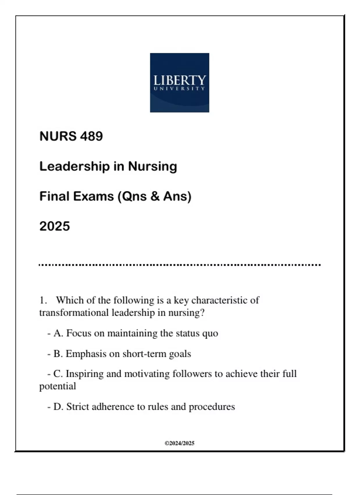 , - ANS: C. Inspiring and motivating followers to achieve their