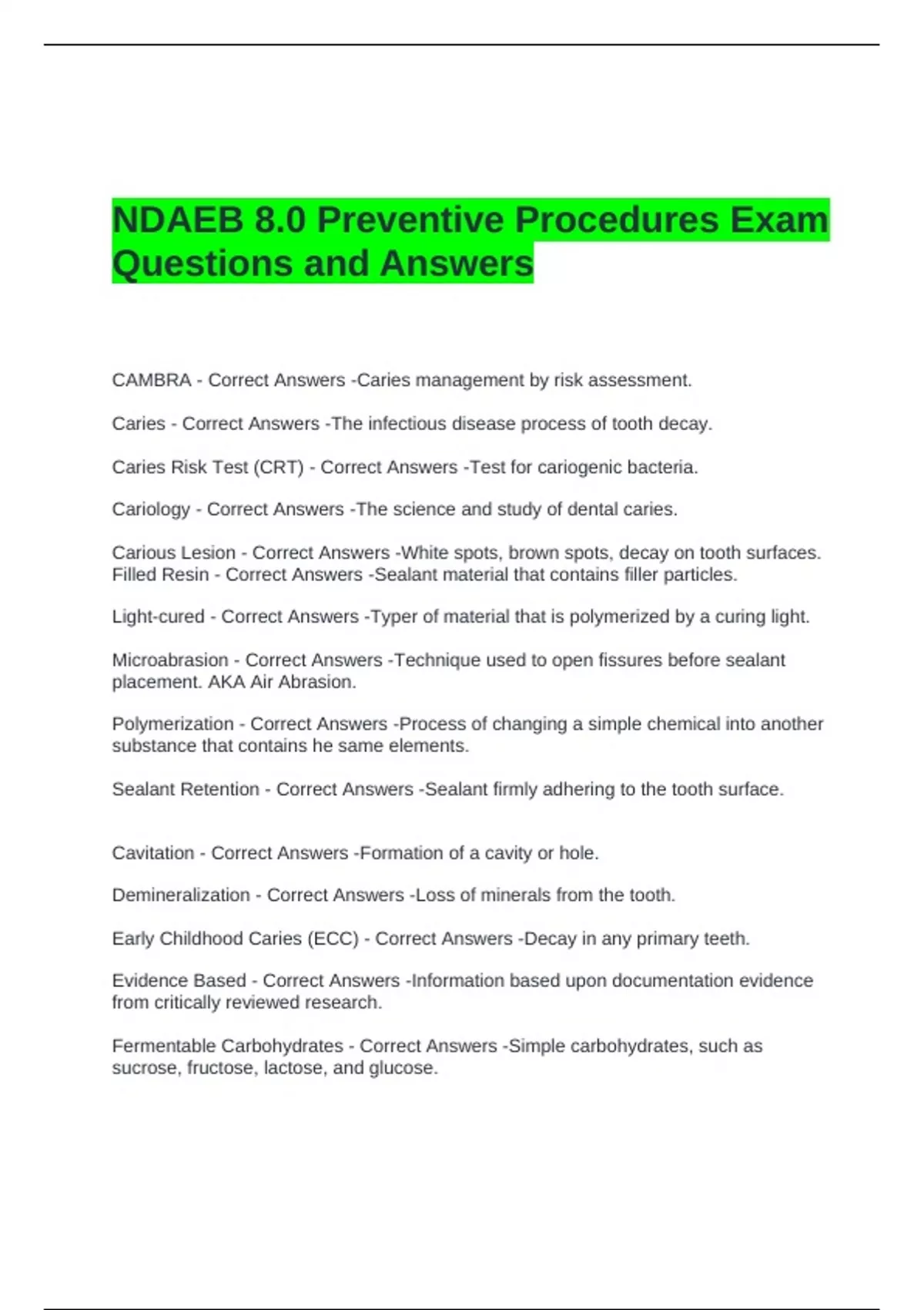 Incipient Caries - Correct Answers -Tooth decay that is beginning to form or become