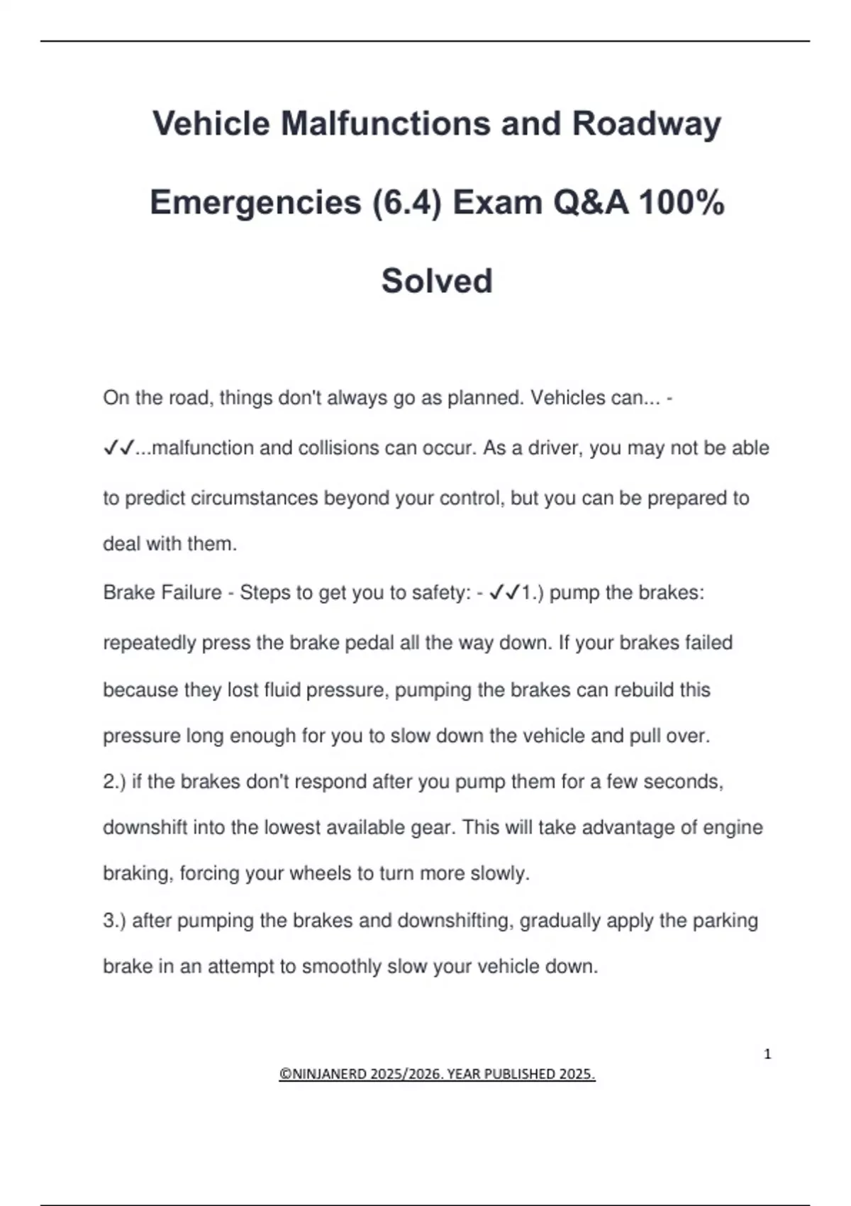 Brake Failure - Steps to get you to safety: - ✔✔1.) pump the brakes: