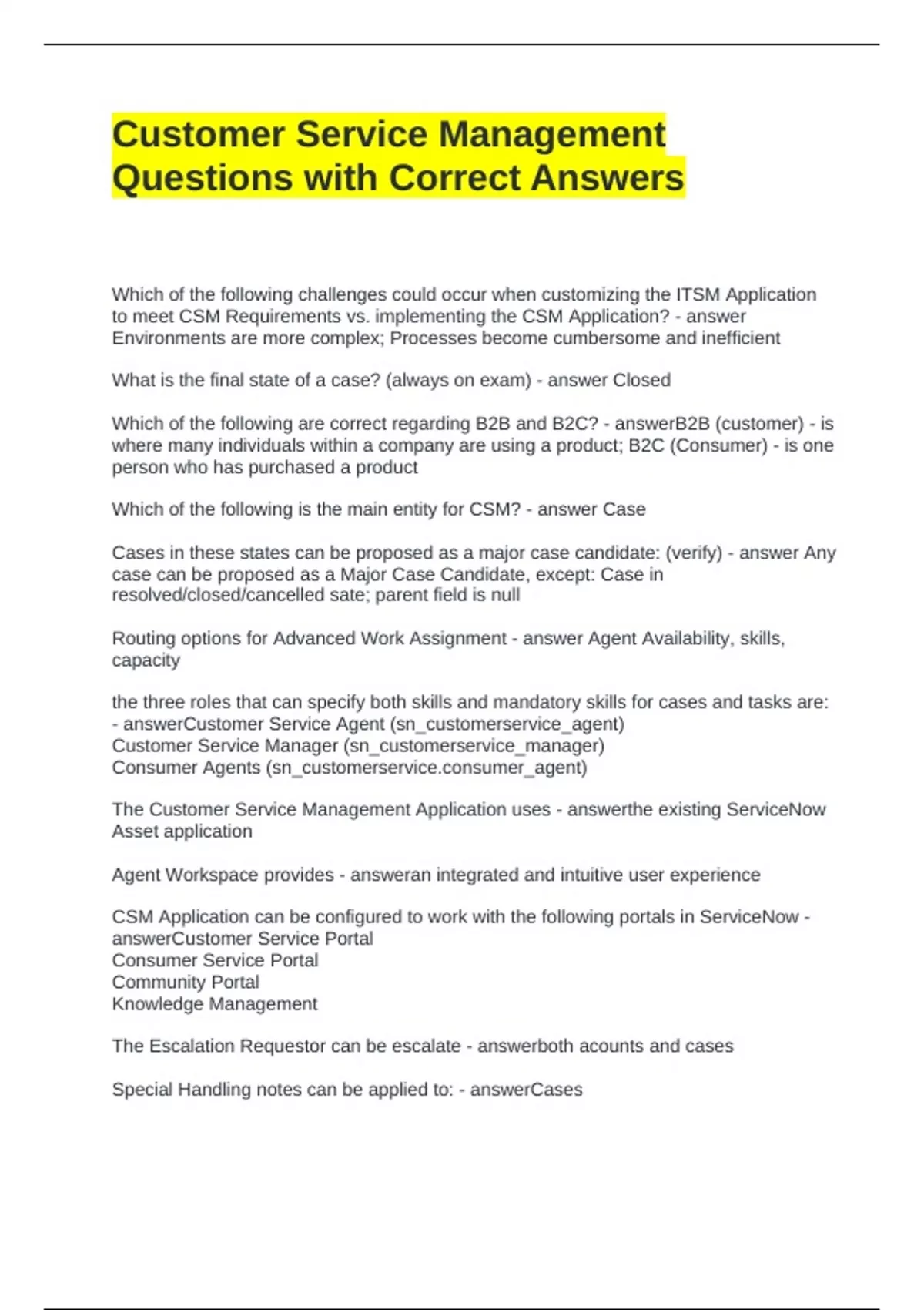 What are the portals for CSM? - answerCustomer Service Potal (B2B)