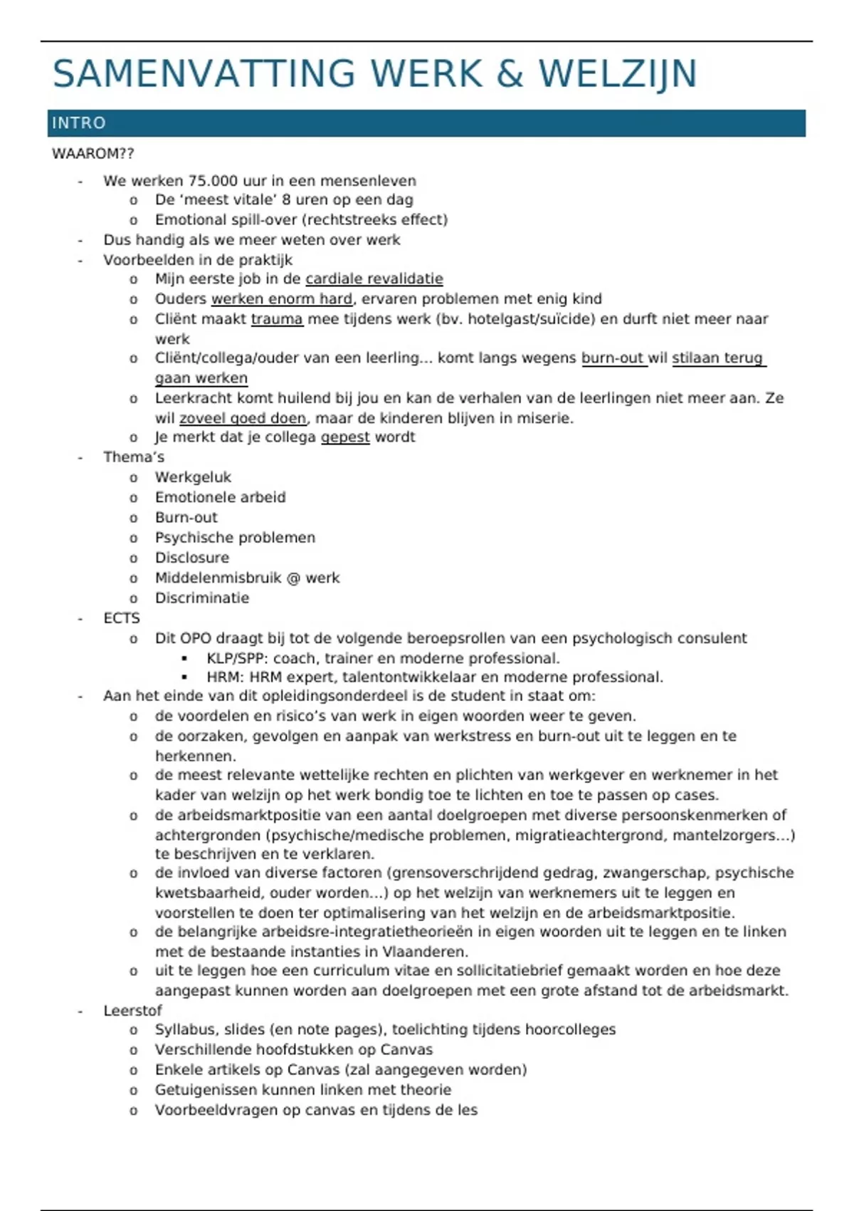 SAMENVATTING WERK & WELZIJN