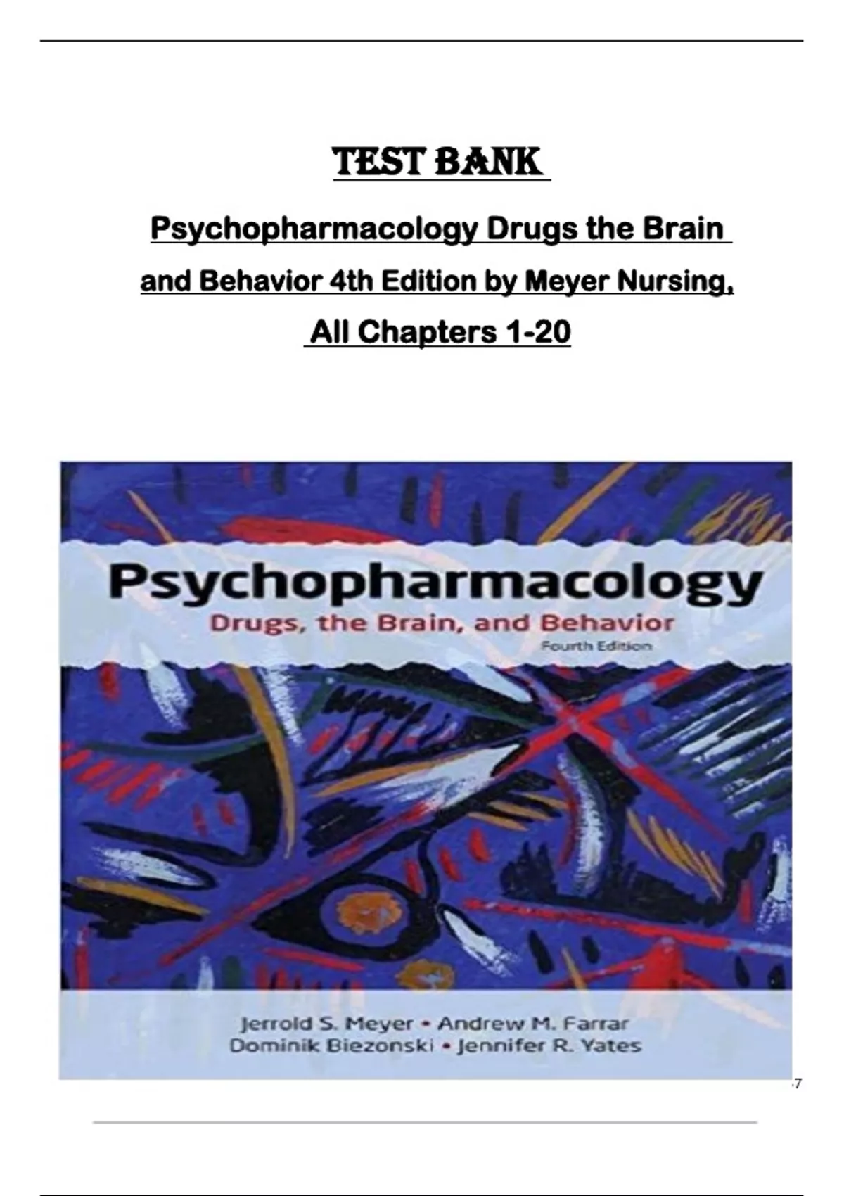 TEST BANK for Psychopharmacology Drugs the Brain and Behavior 4th Edition by Meyer Nursing, All Chapters 1-20