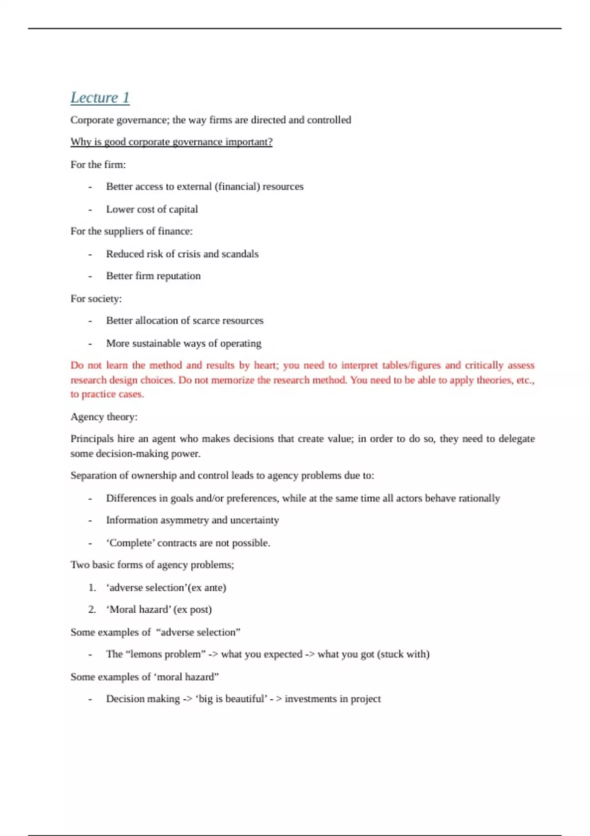 To curb agency problems it is important to have a corporate governance (CG) mechanism.